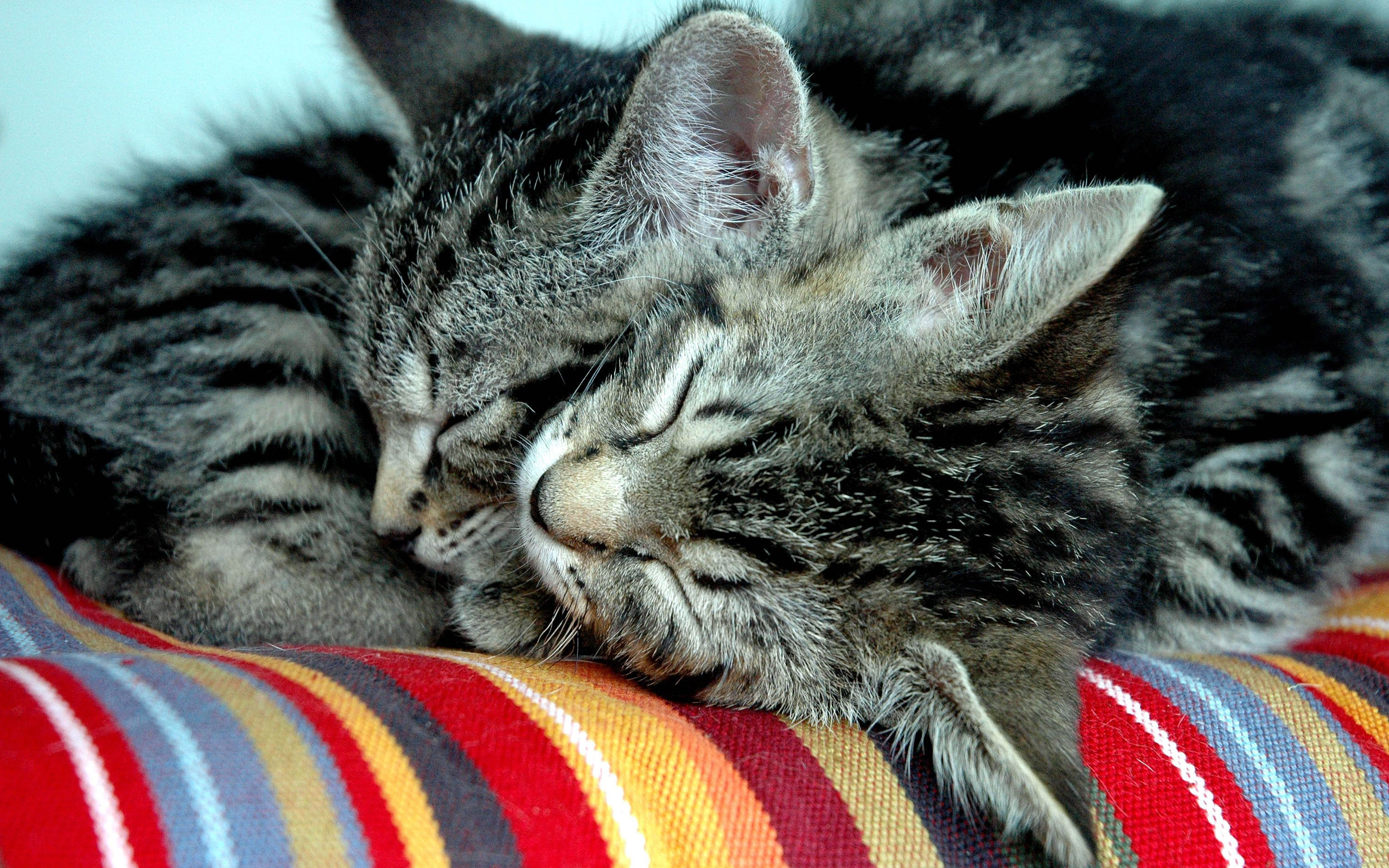 Скачать обои для рабочего стола Кошки уснули вместе и фото