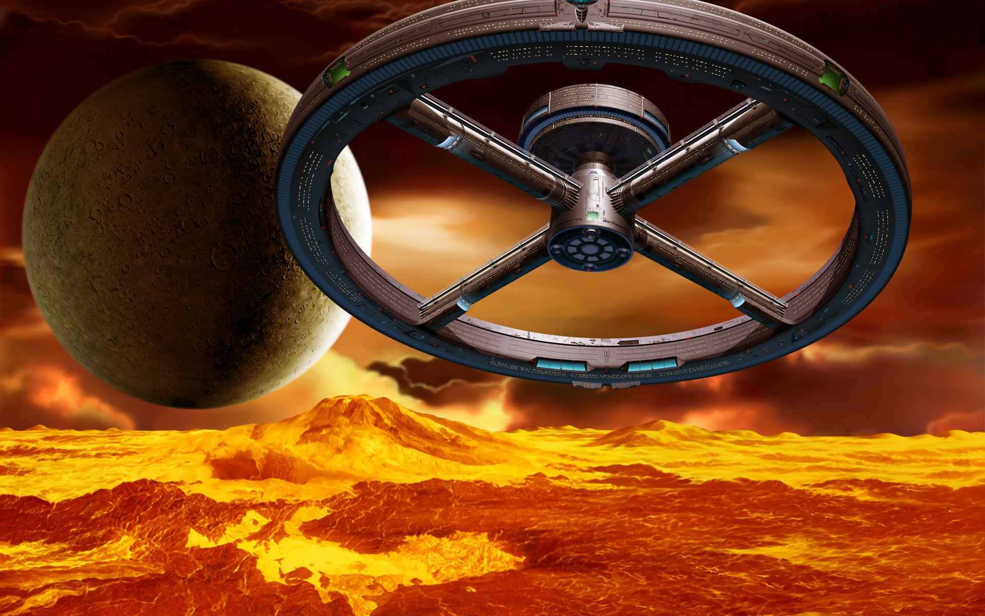 Похожие обои на Космическая станциянад поверхностью Венеры: