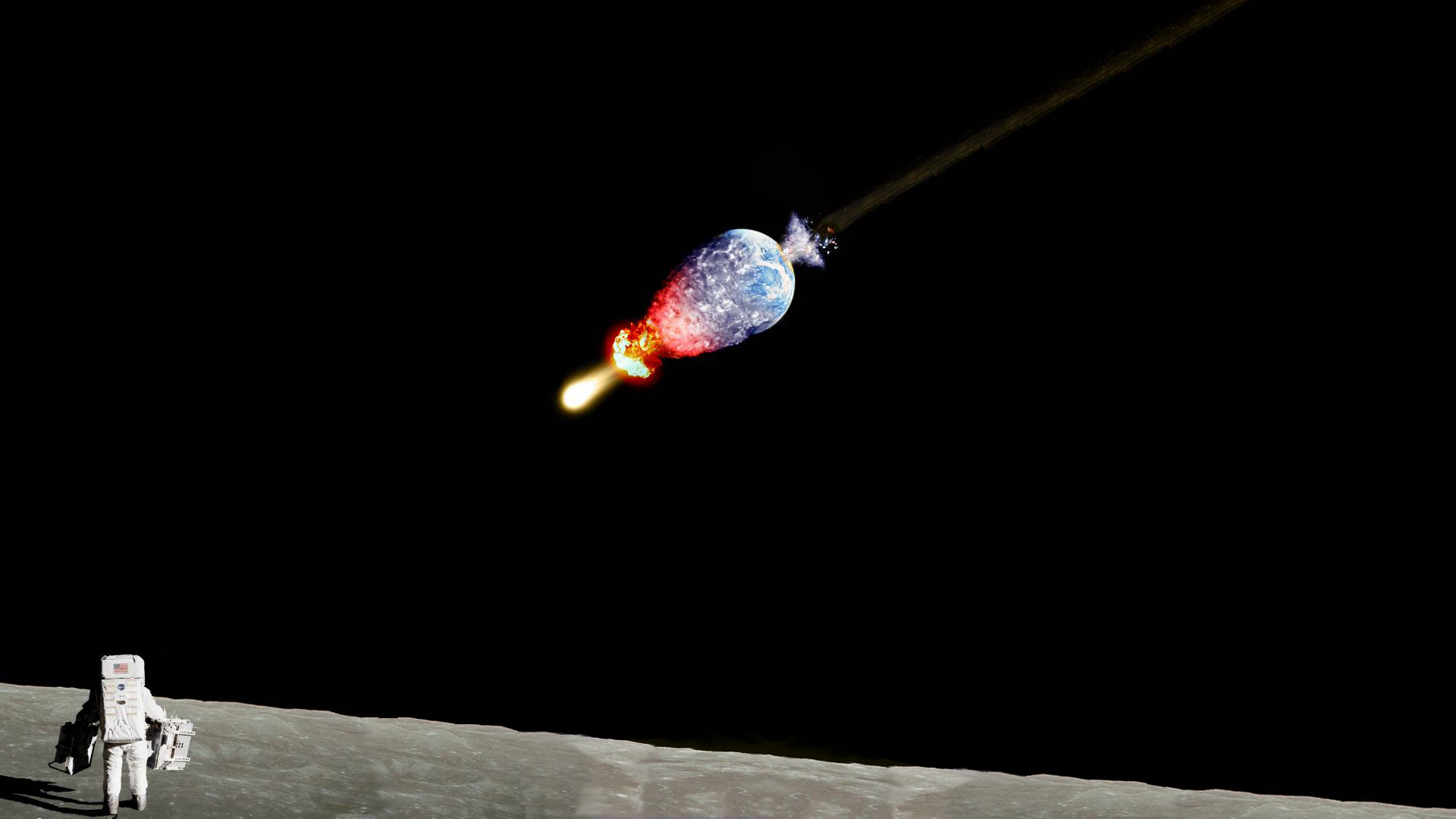 Похожие обои на Космонавт созерцает метеорит с причудливым хвостом: