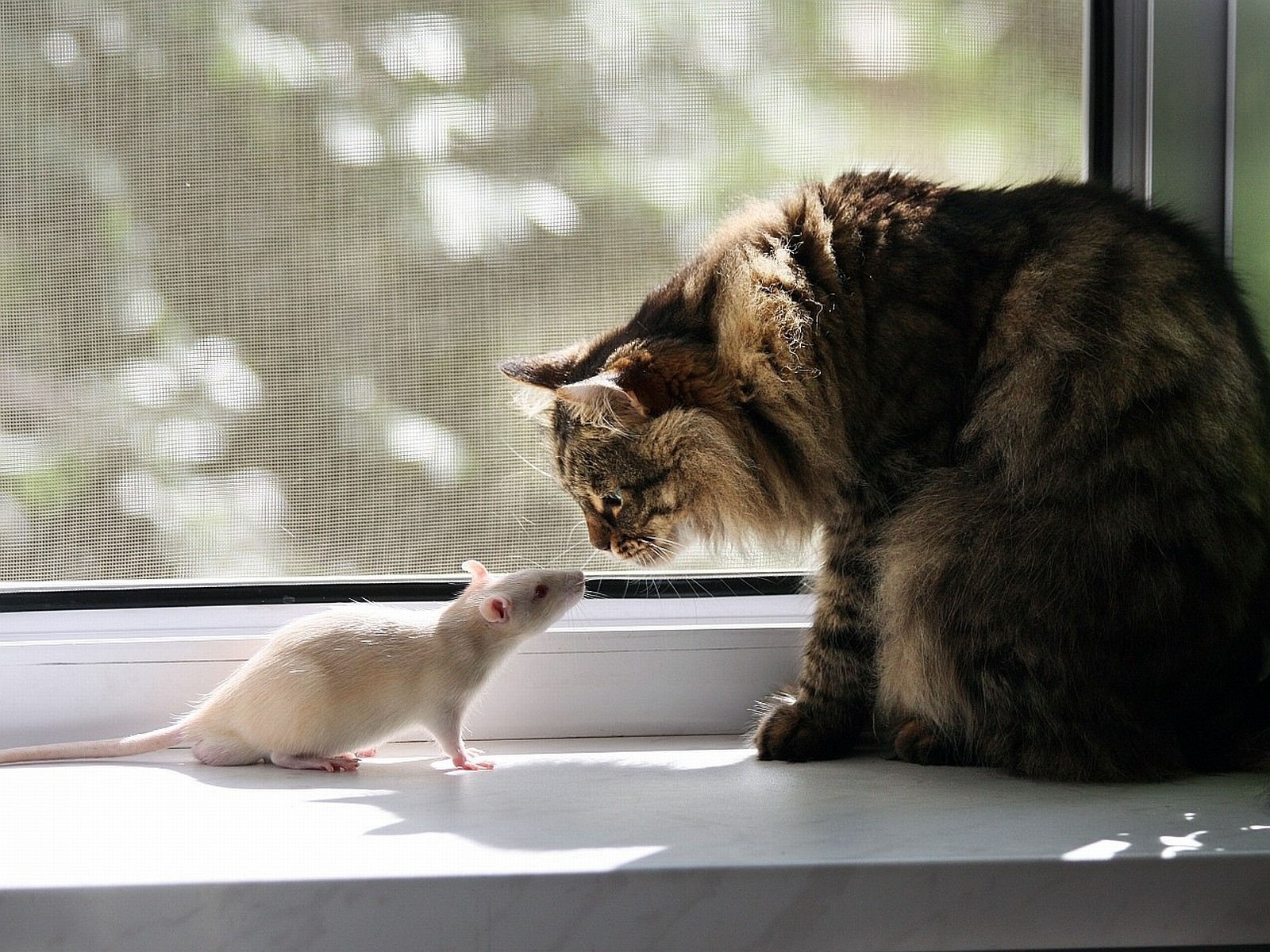Скачать обои для рабочего стола Кот и белая крыса и фото