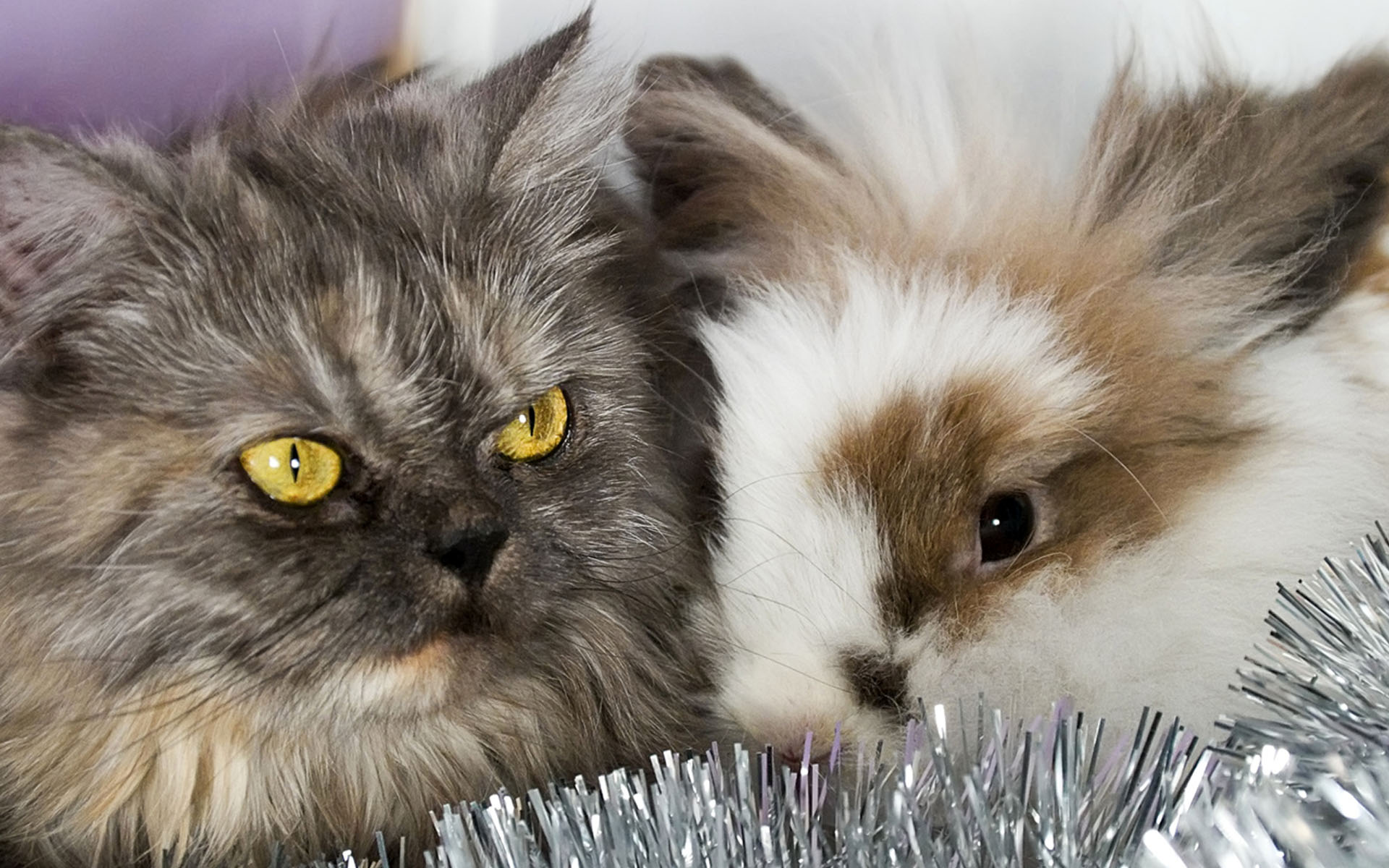 Скачать обои для рабочего стола Кот и крольчонок и фото