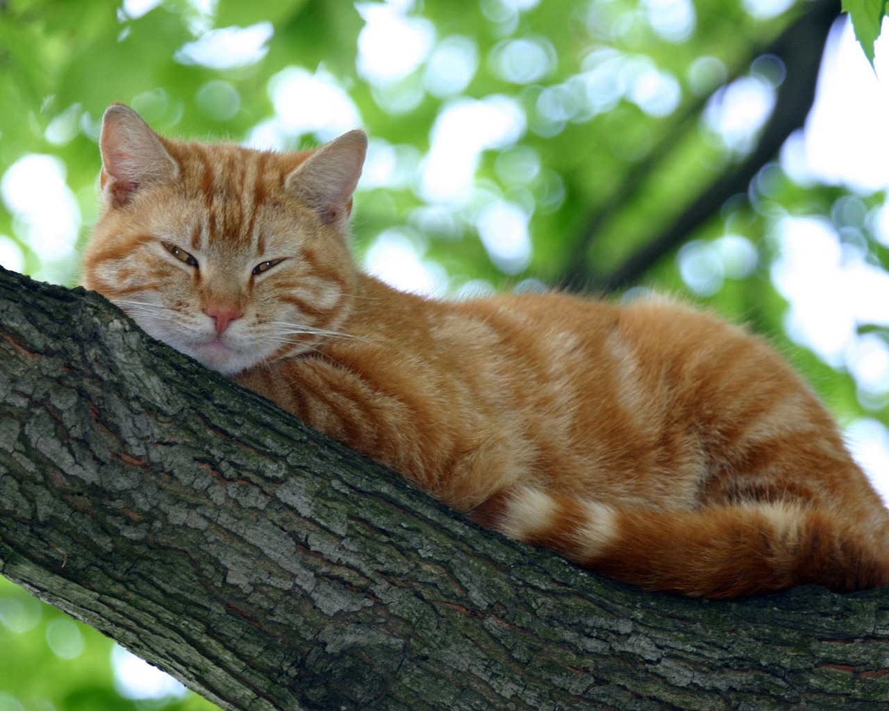 Похожие обои на Кот на дереве и ему хорошо: