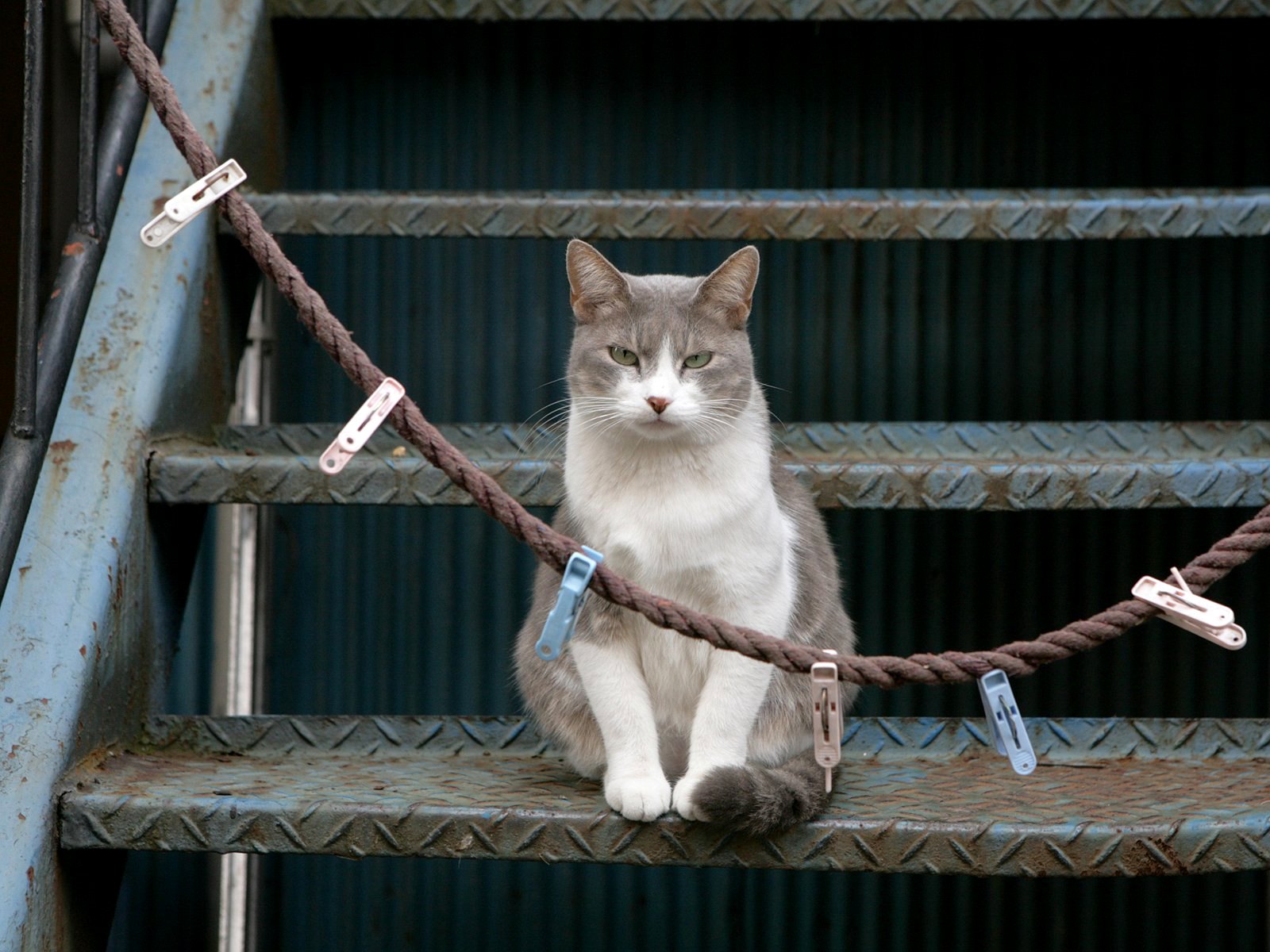 Скачать обои для рабочего стола Кот на лестнице и фото