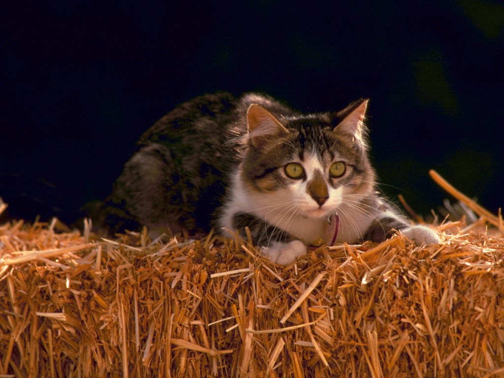 Скачать обои для рабочего стола Кот на сеновале и фото