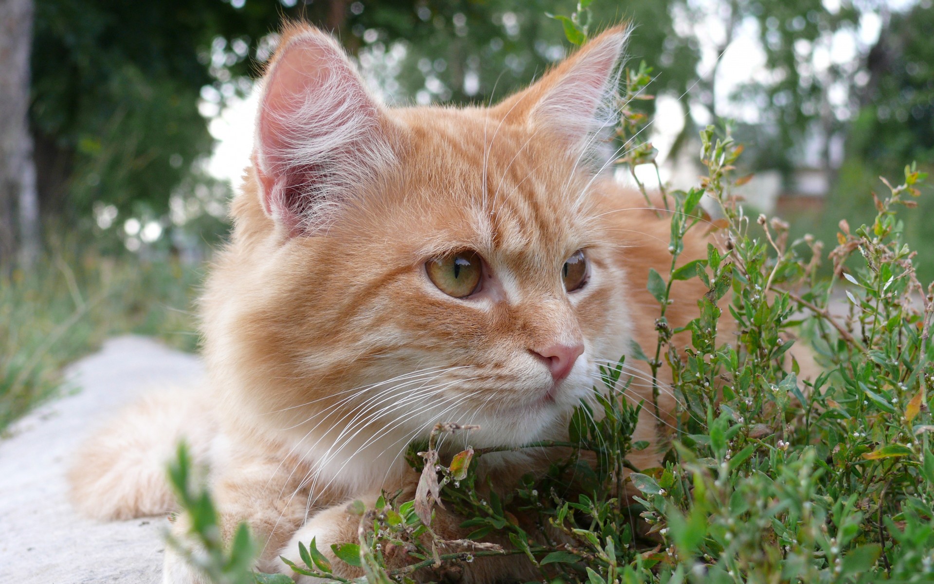 Похожие обои на Кот рыжий сидит на зеленой травке: