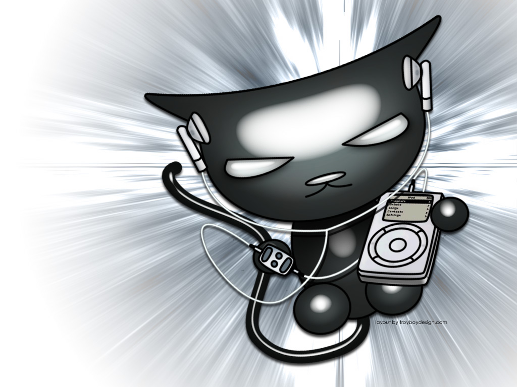 Скачать обои для рабочего стола Кот слушает плейер и фото