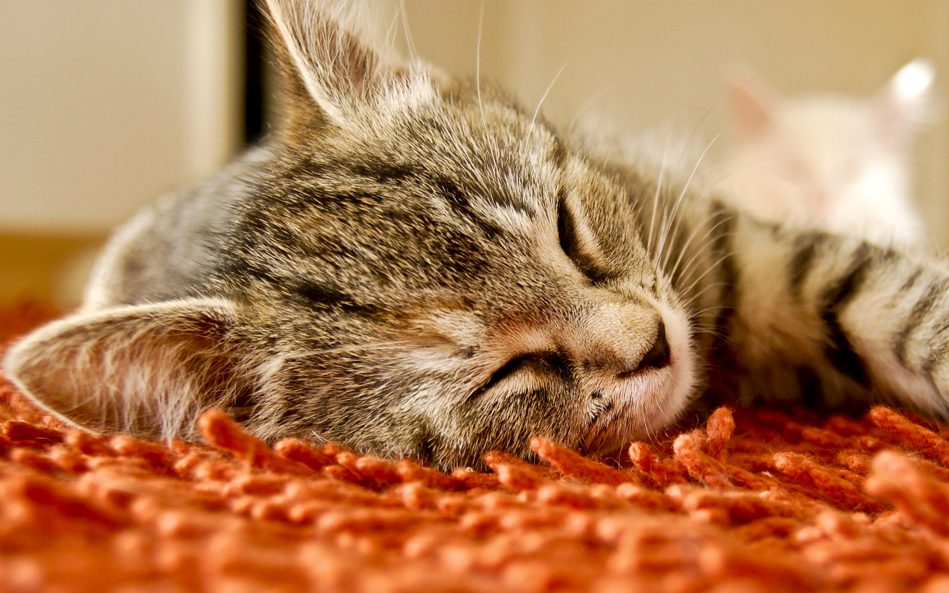 Скачать обои для рабочего стола Кот уснул на кровати и фото