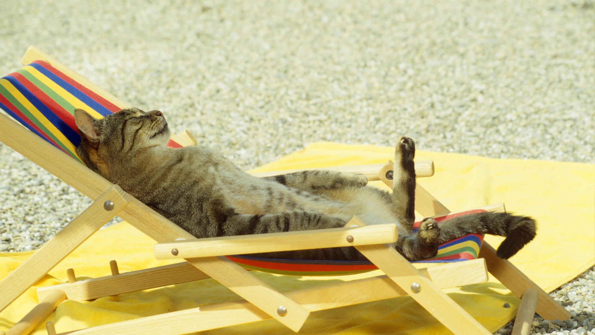 Скачать обои для рабочего стола Кот в шезлонге и фото