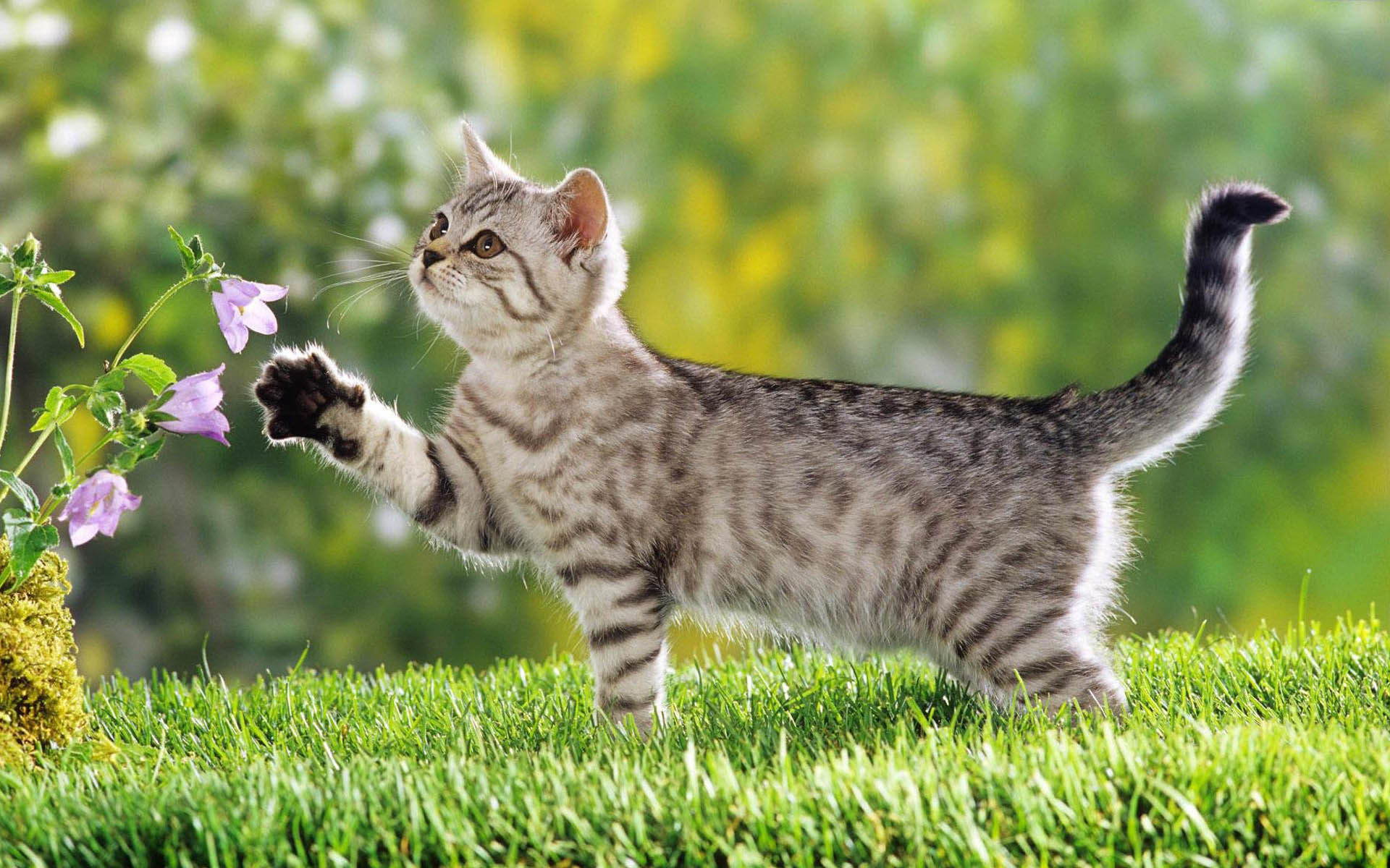Скачать обои для рабочего стола Котёнок и колокольчики и фото
