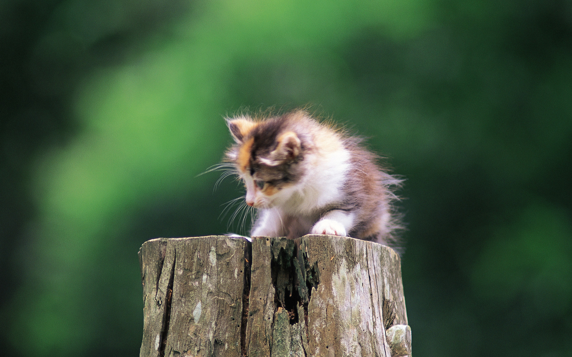 Скачать обои для рабочего стола Котенок на пеньке и фото