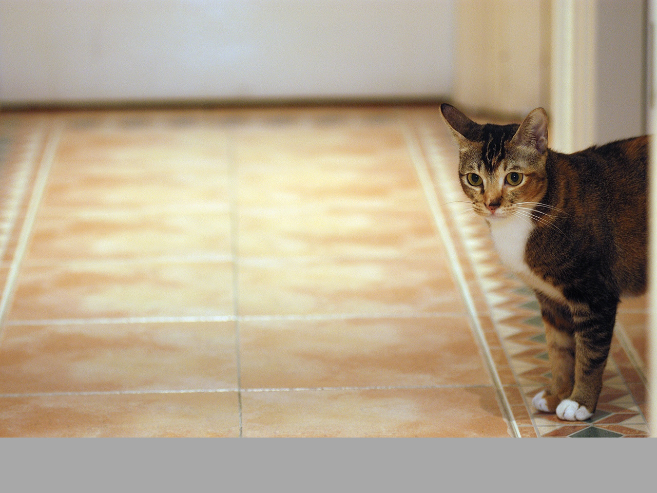 Скачать обои для рабочего стола Котенок на плитке дома и фото