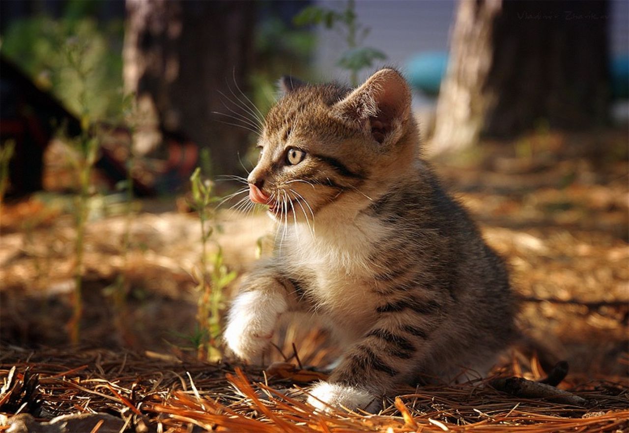 Скачать обои для рабочего стола Котёнок познаёт мир и фото