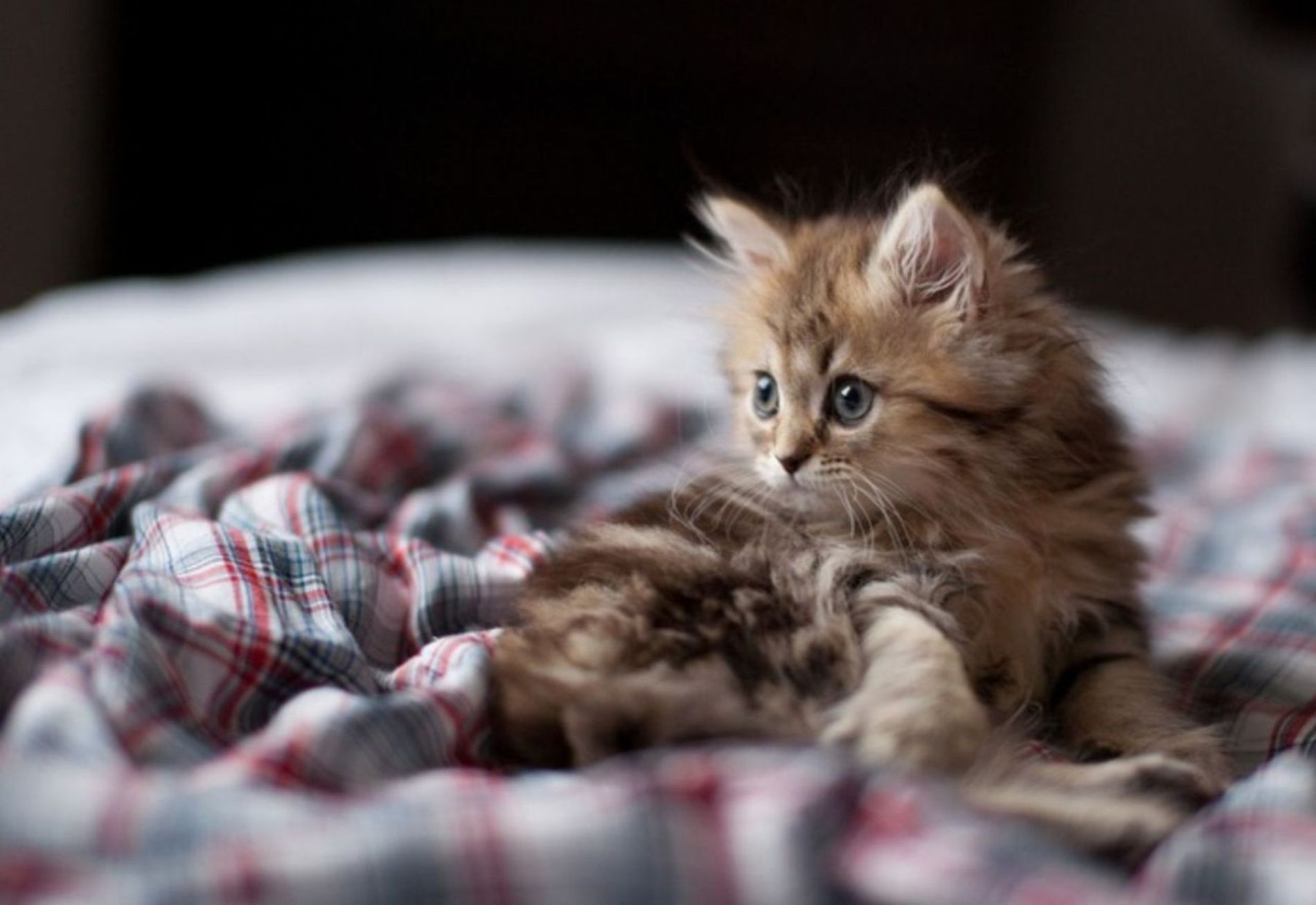Скачать обои для рабочего стола Котёнок проснулся и фото