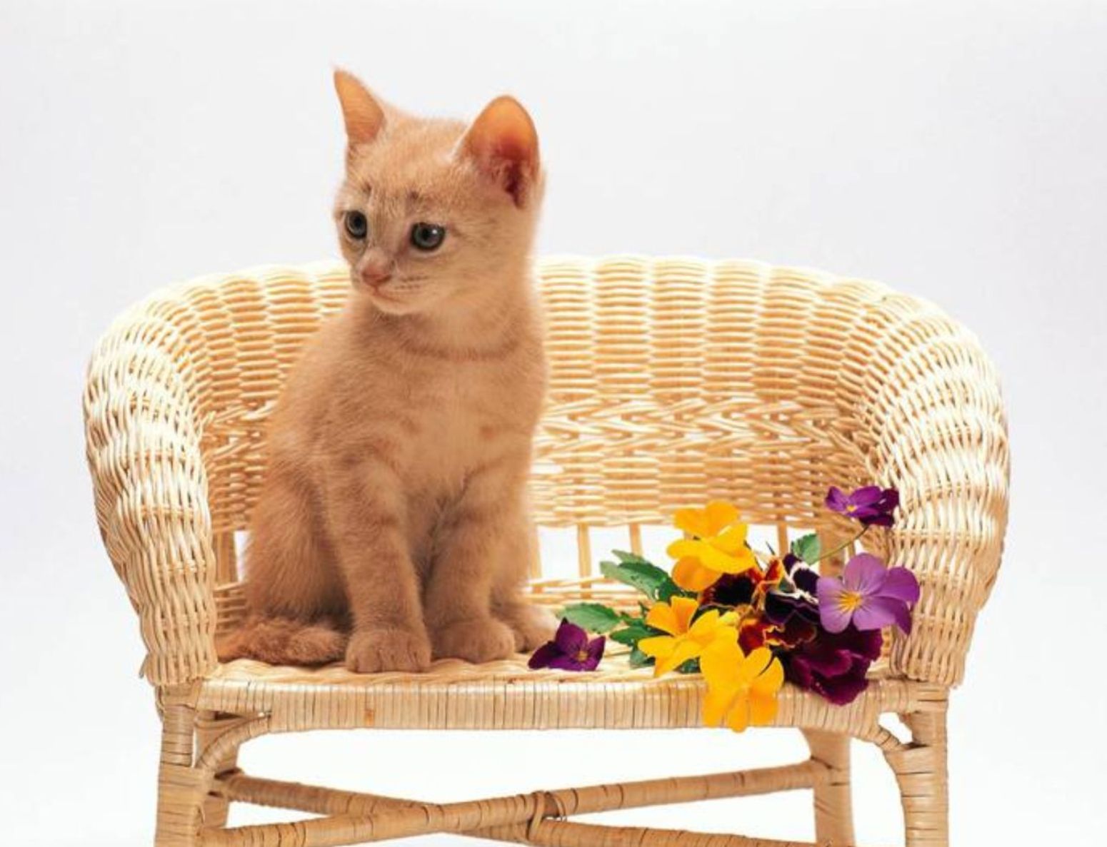 Обои Котёнок в плетёном кресле