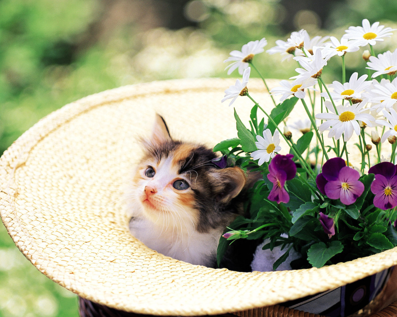 Скачать обои для рабочего стола Котенок в шляпе и фото