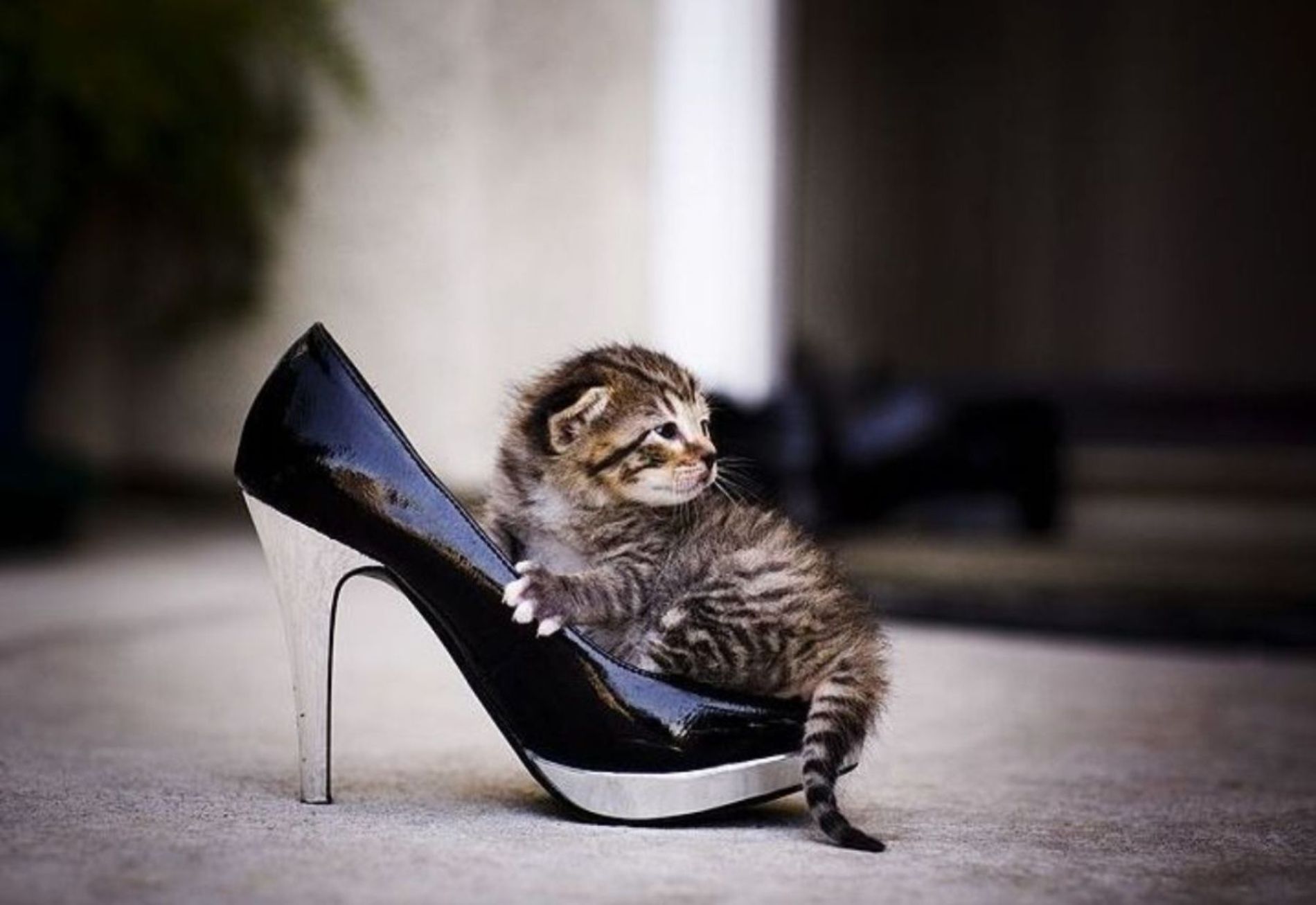 Скачать обои для рабочего стола Котёнок в туфельке и фото