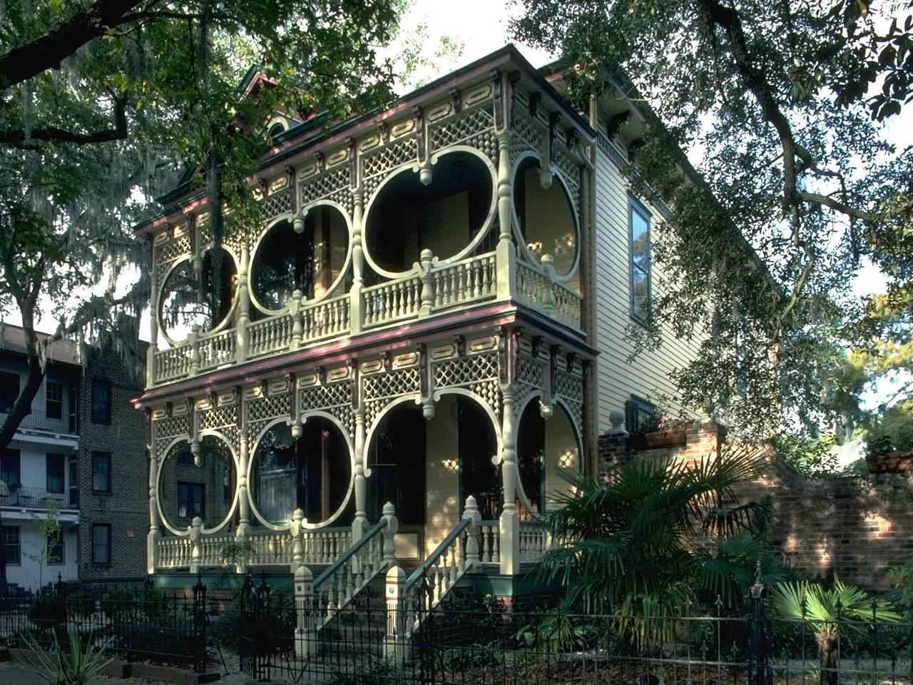 Скачать обои для рабочего стола Коттедж с удивительно красивым балконом и фото