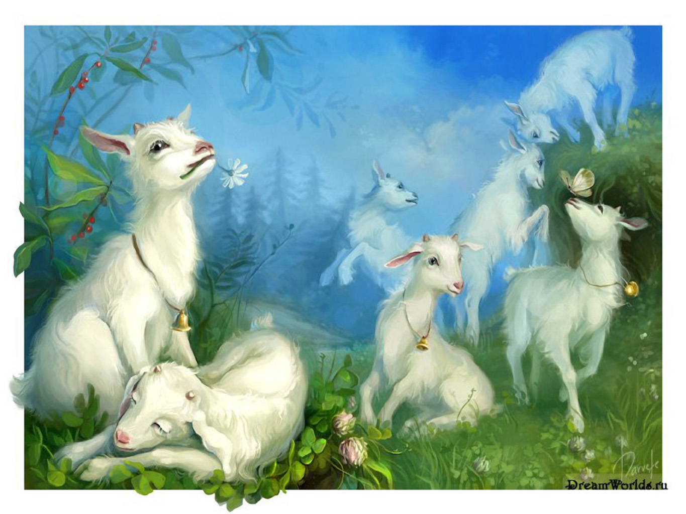 Похожие обои на Козочки на лугу:
