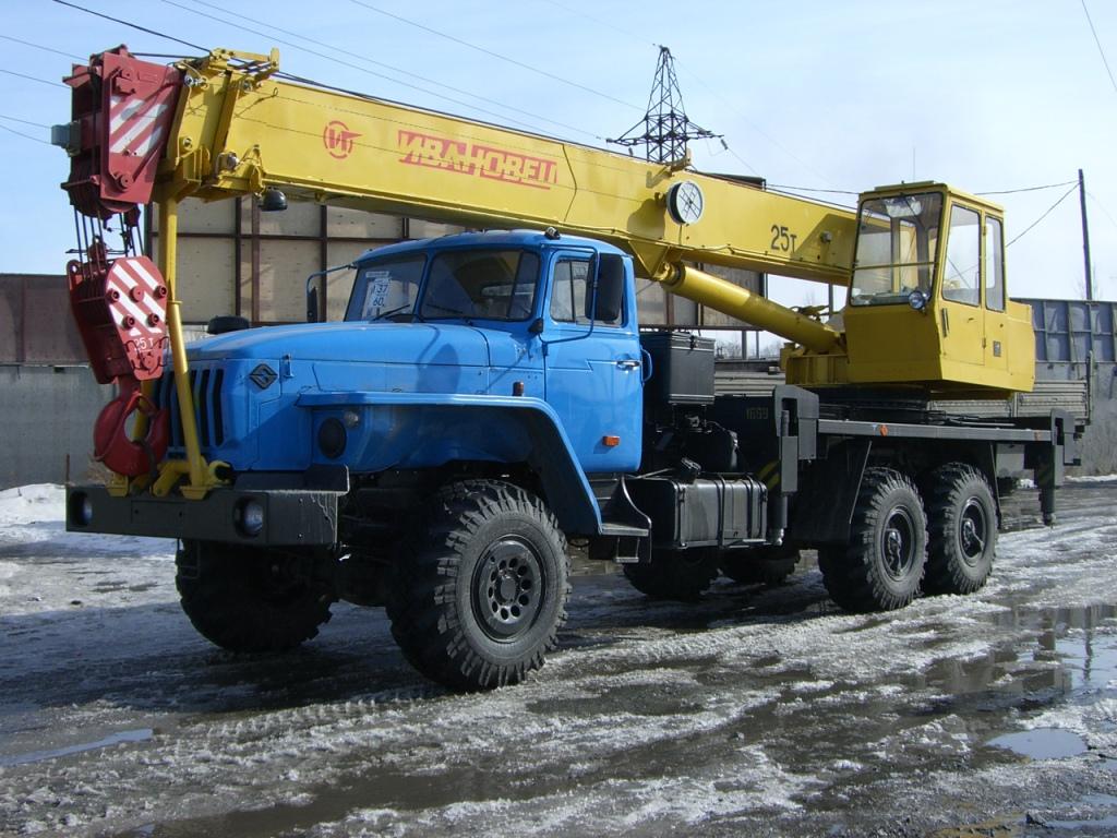 Скачать обои для рабочего стола Кран на шасси Урал 4320 и фото