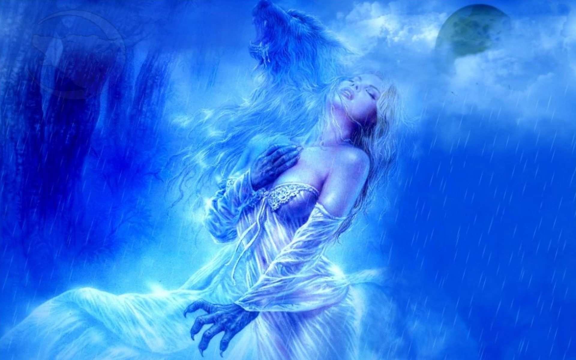 Скачать обои для рабочего стола Красавица превращается в оборотня и фото