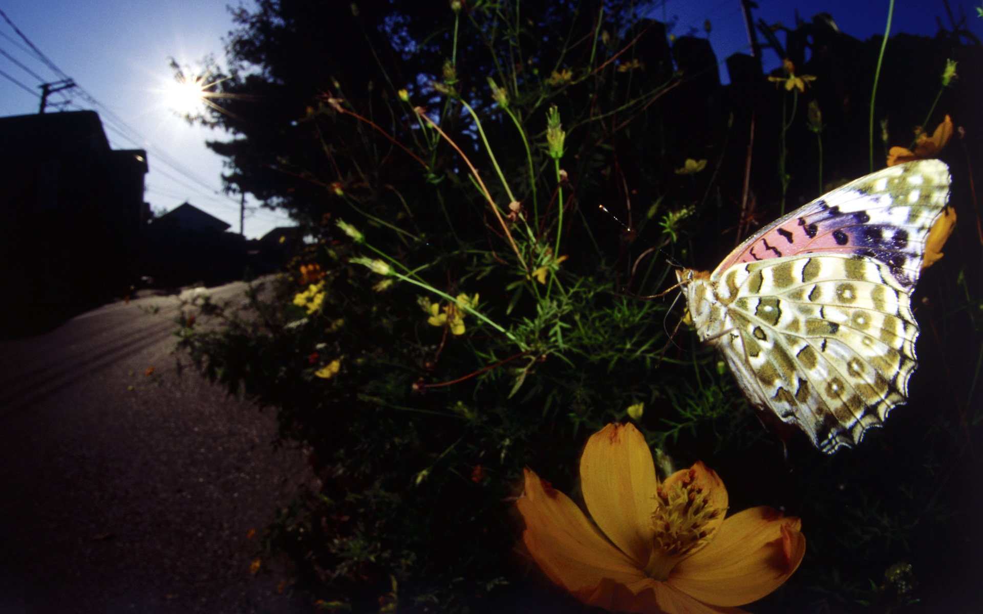 Скачать обои для рабочего стола Красивая бабочка вечером и фото