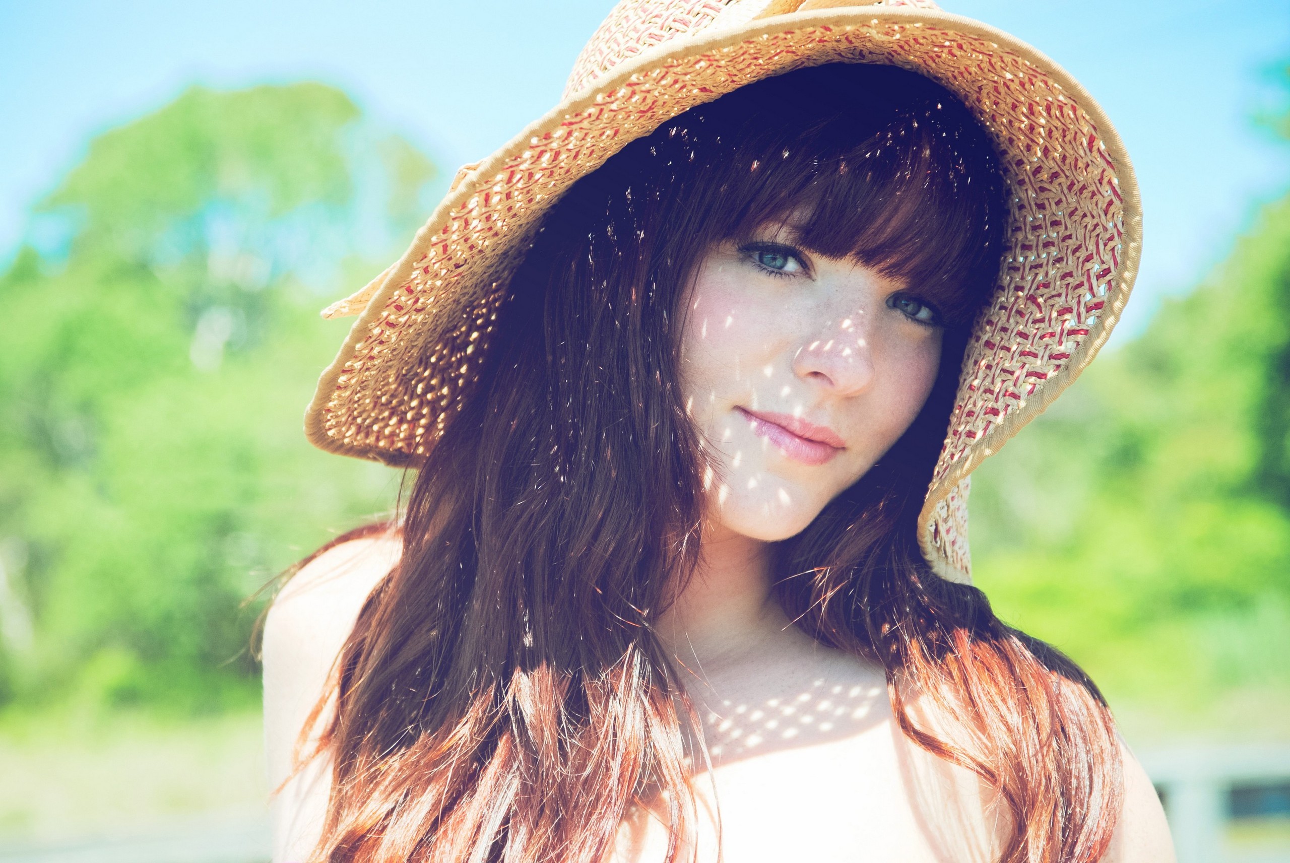 Скачать обои для рабочего стола Красивая в соломенной шляпе и фото