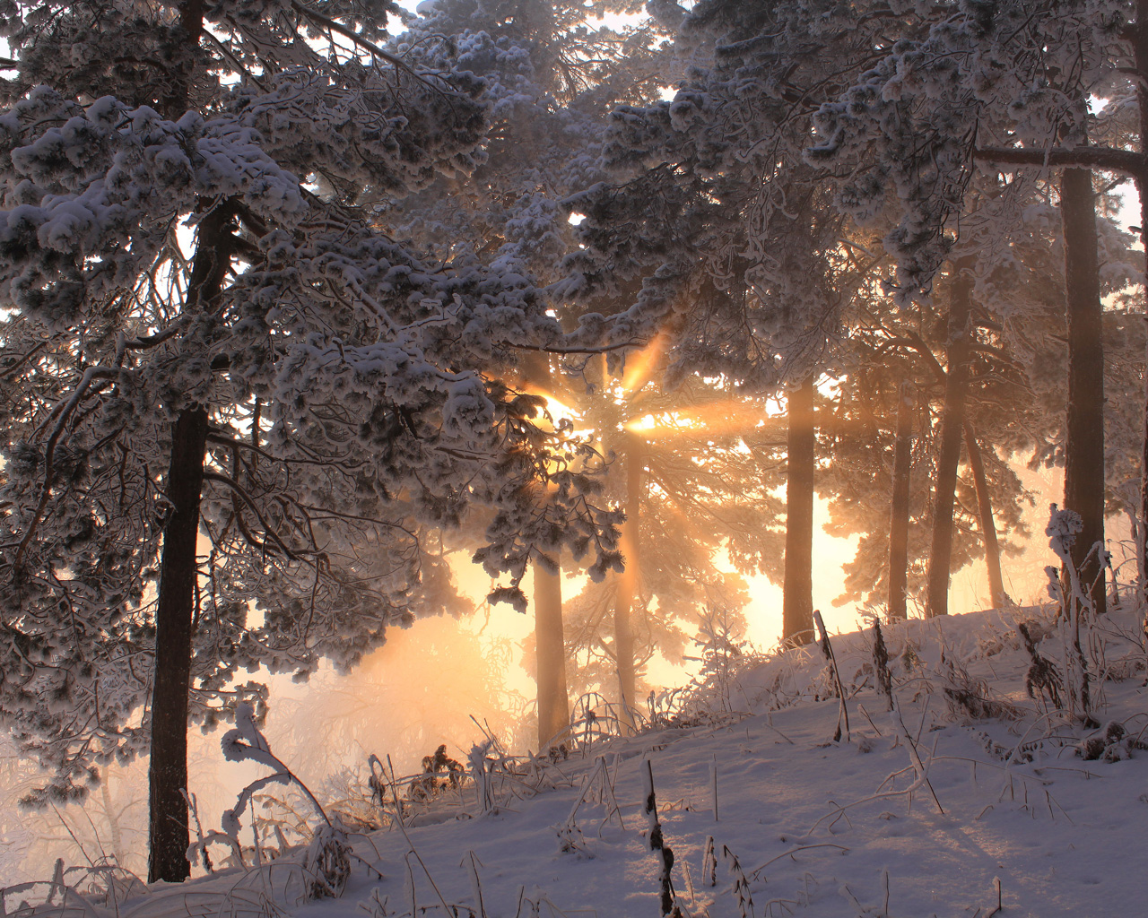 Скачать обои для рабочего стола Красивые деревья, лучи солнца и фото