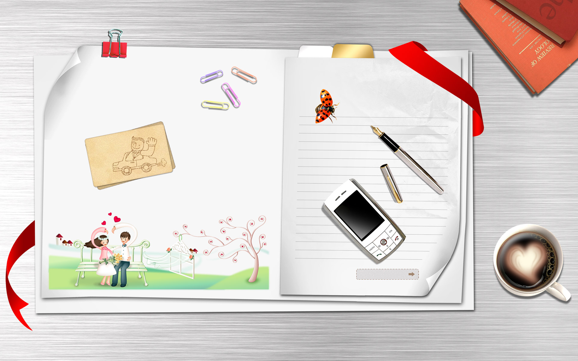 Скачать обои для рабочего стола Красивый рисунок пары на листке тетради и фото