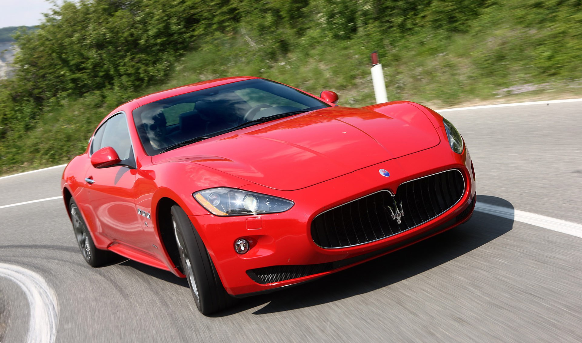 Скачать обои для рабочего стола Красная Мезератти на дороге и фото