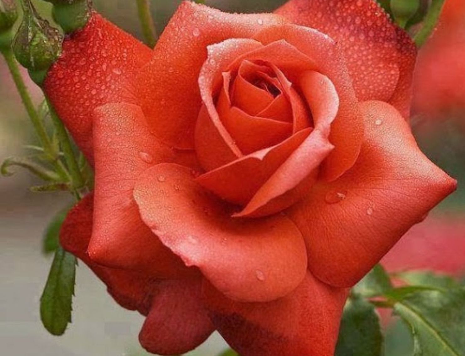 Скачать обои для рабочего стола Красная роза с каплями и фото