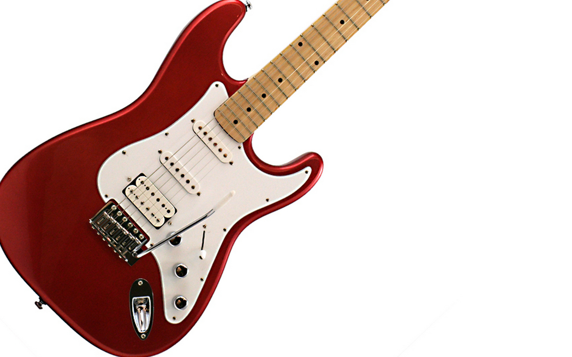 Скачать обои для рабочего стола Красно - белая электрическая гитара и фото