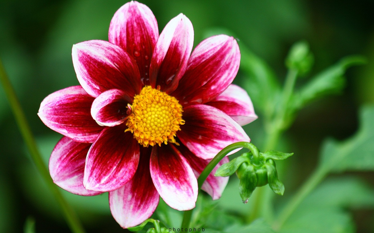 Скачать обои для рабочего стола Красно-белые лепестки и желтая серединка и фото