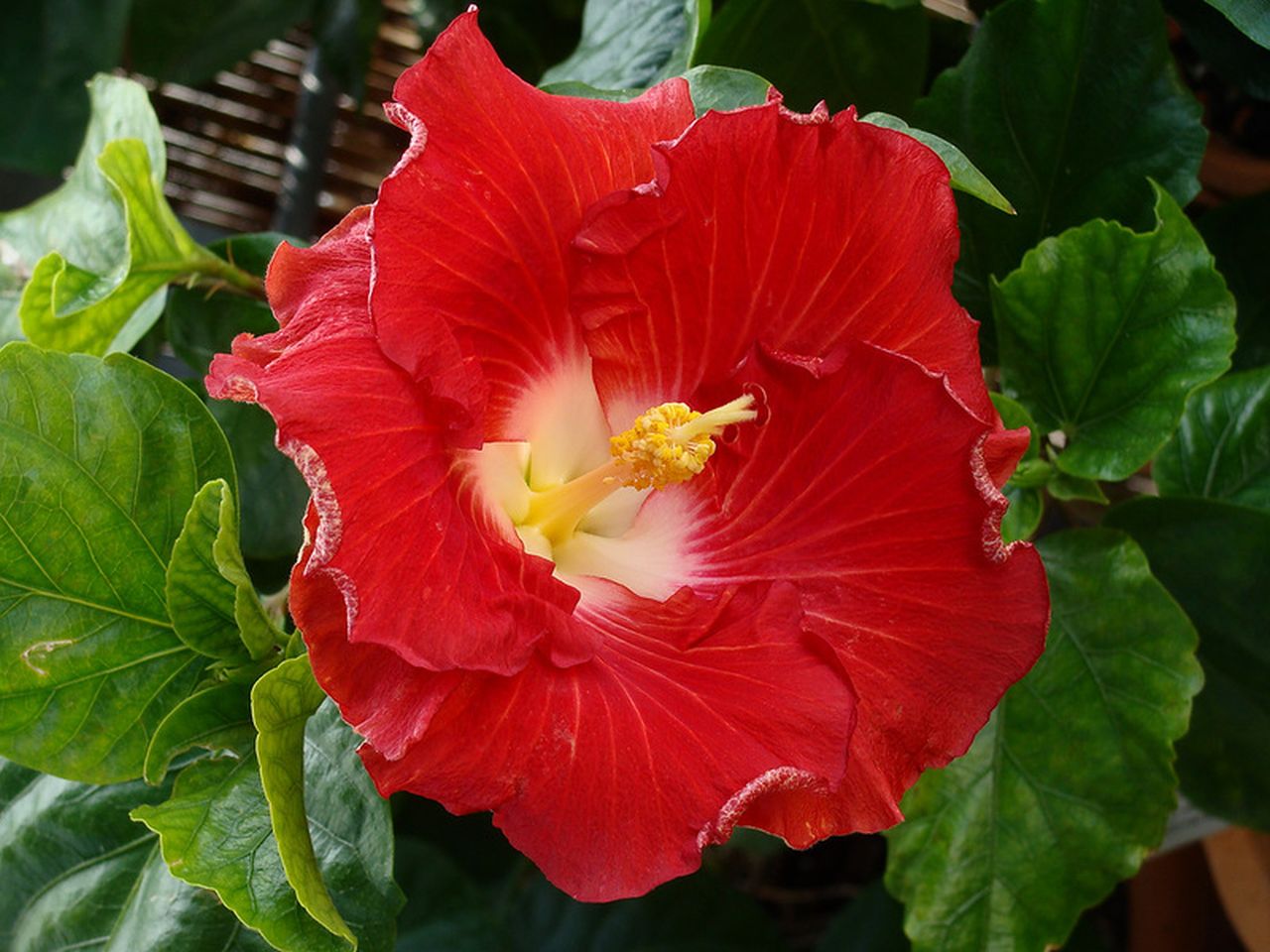 Скачать обои для рабочего стола Красно-белый гибискус и фото