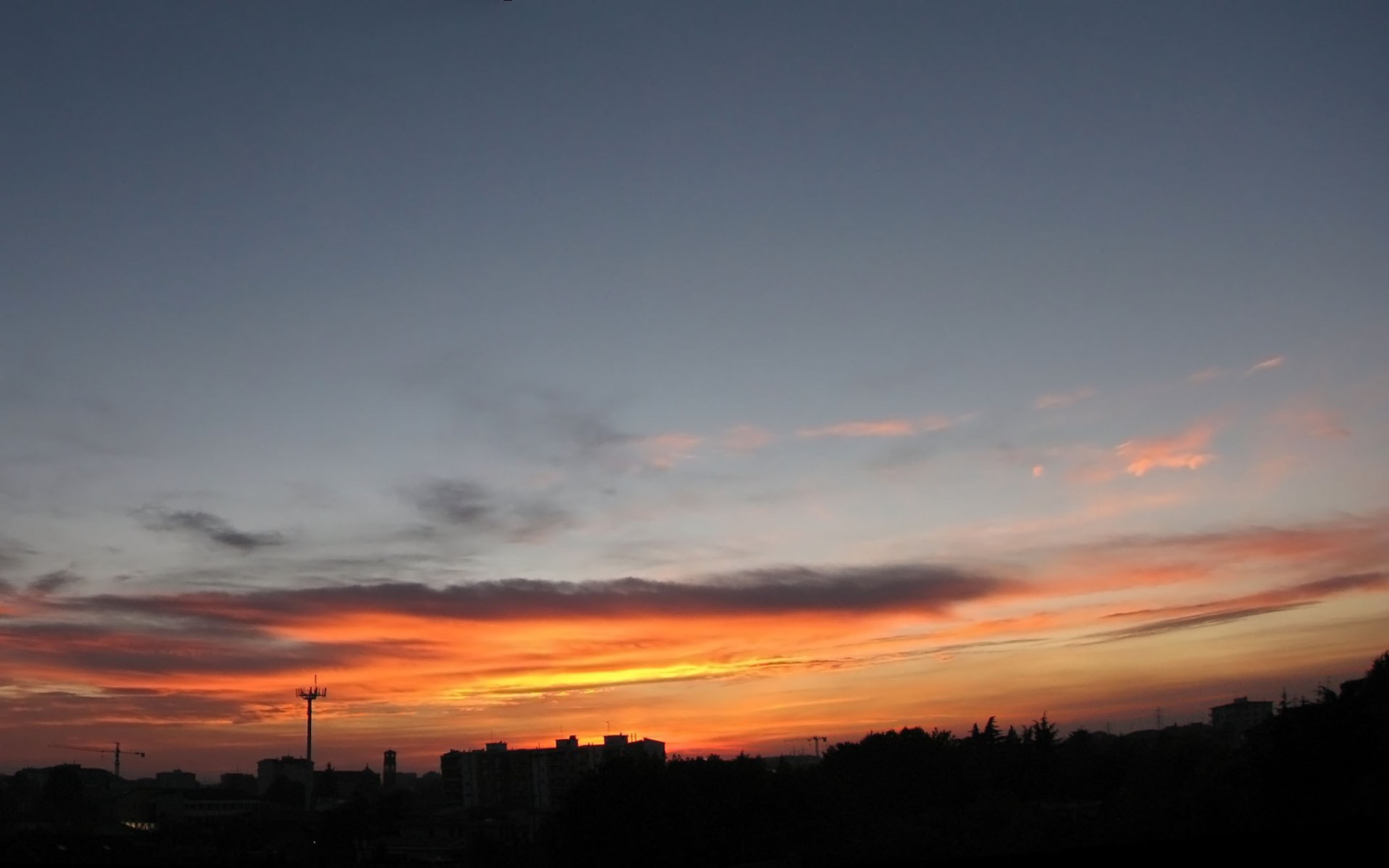 Похожие обои на Красно-золотое небо над высотками домов города: