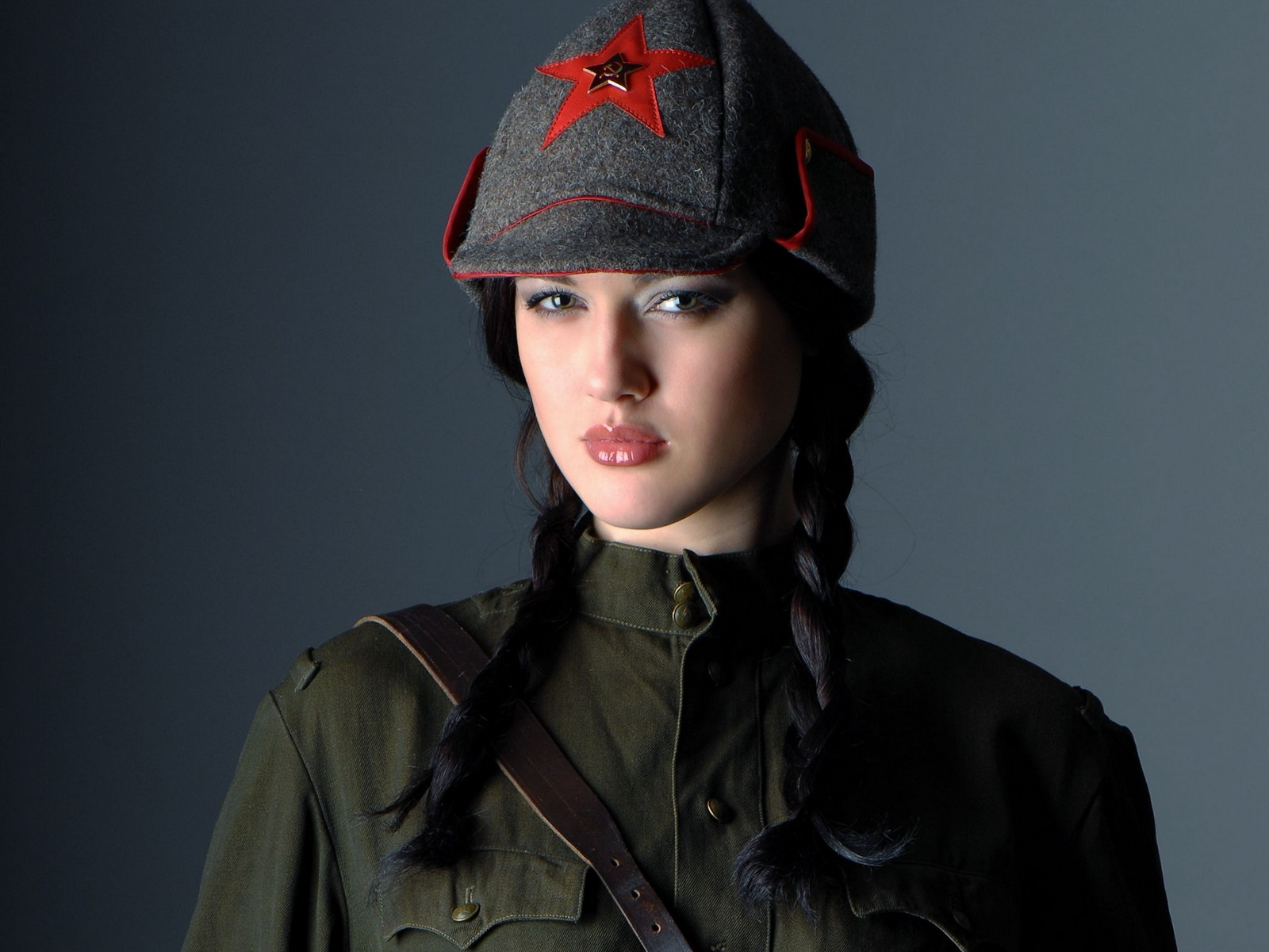 Скачать обои для рабочего стола Красноармейка в одежде и фото