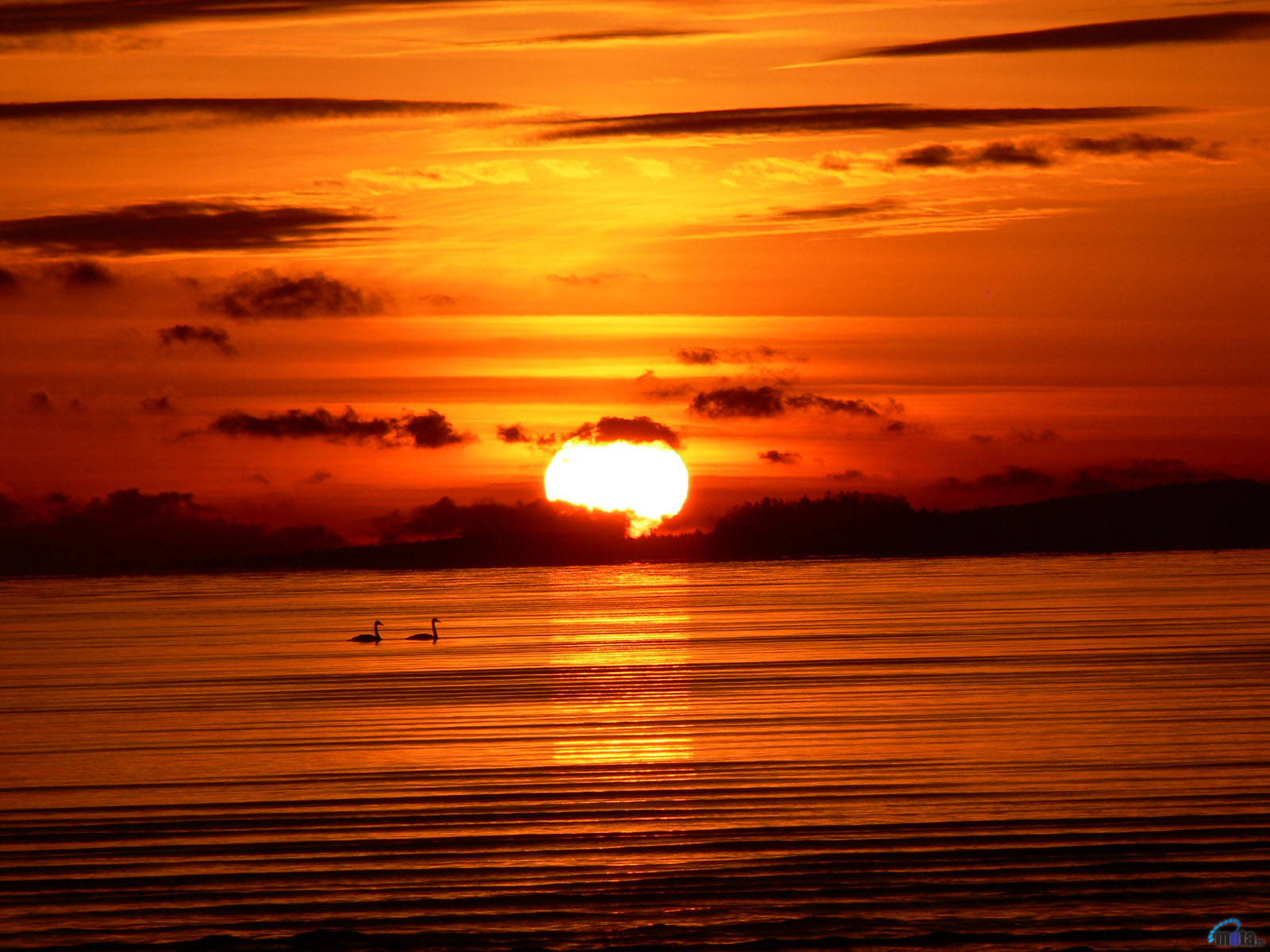 Скачать обои для рабочего стола Красное небо на закате и фото