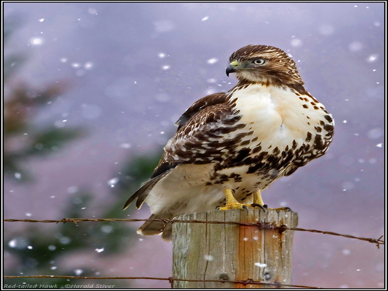 Скачать обои для рабочего стола Краснохвостый ястреб сидит на столбе и фото