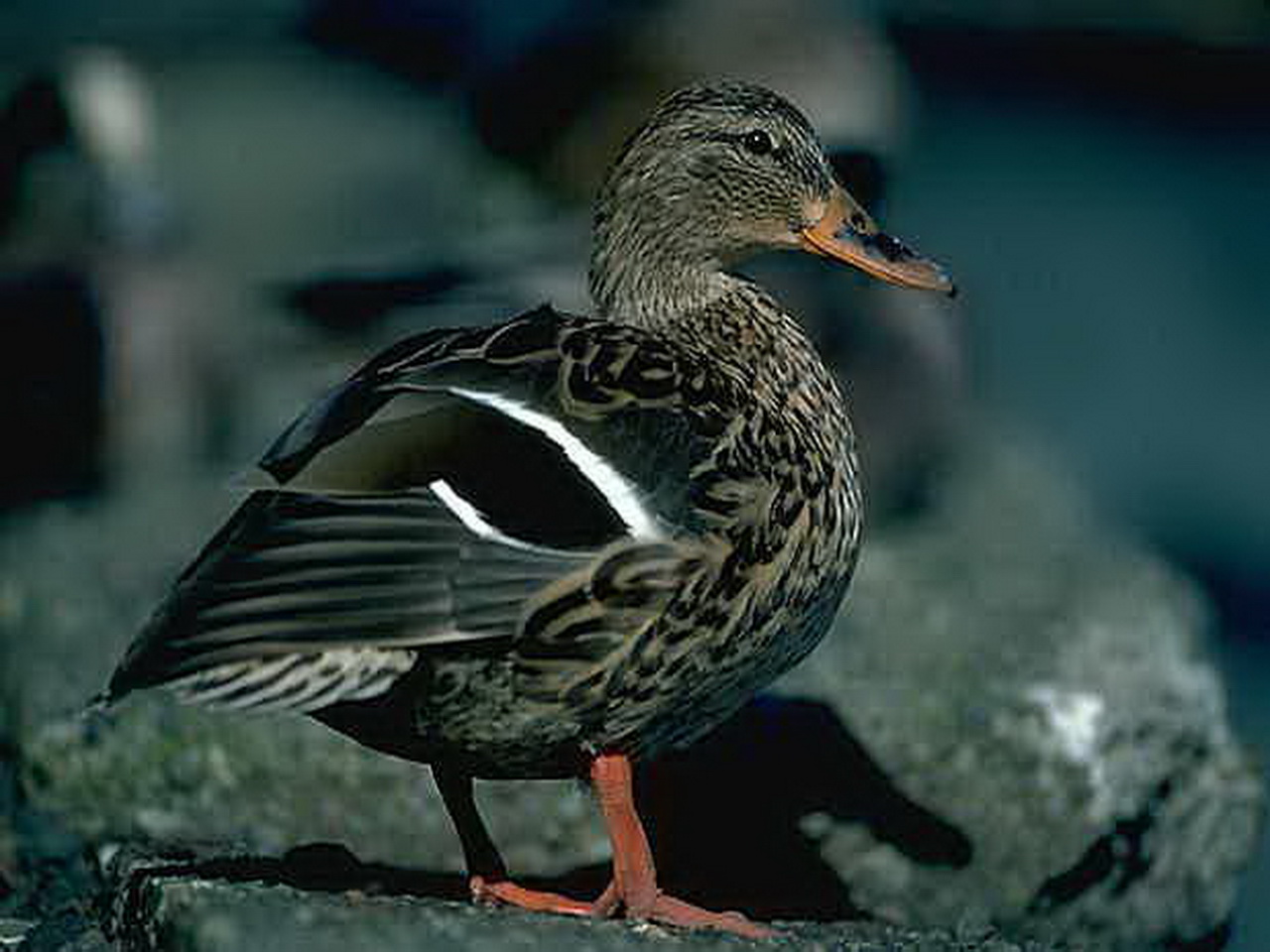 Скачать обои для рабочего стола Краснолапая утка на камнях и фото