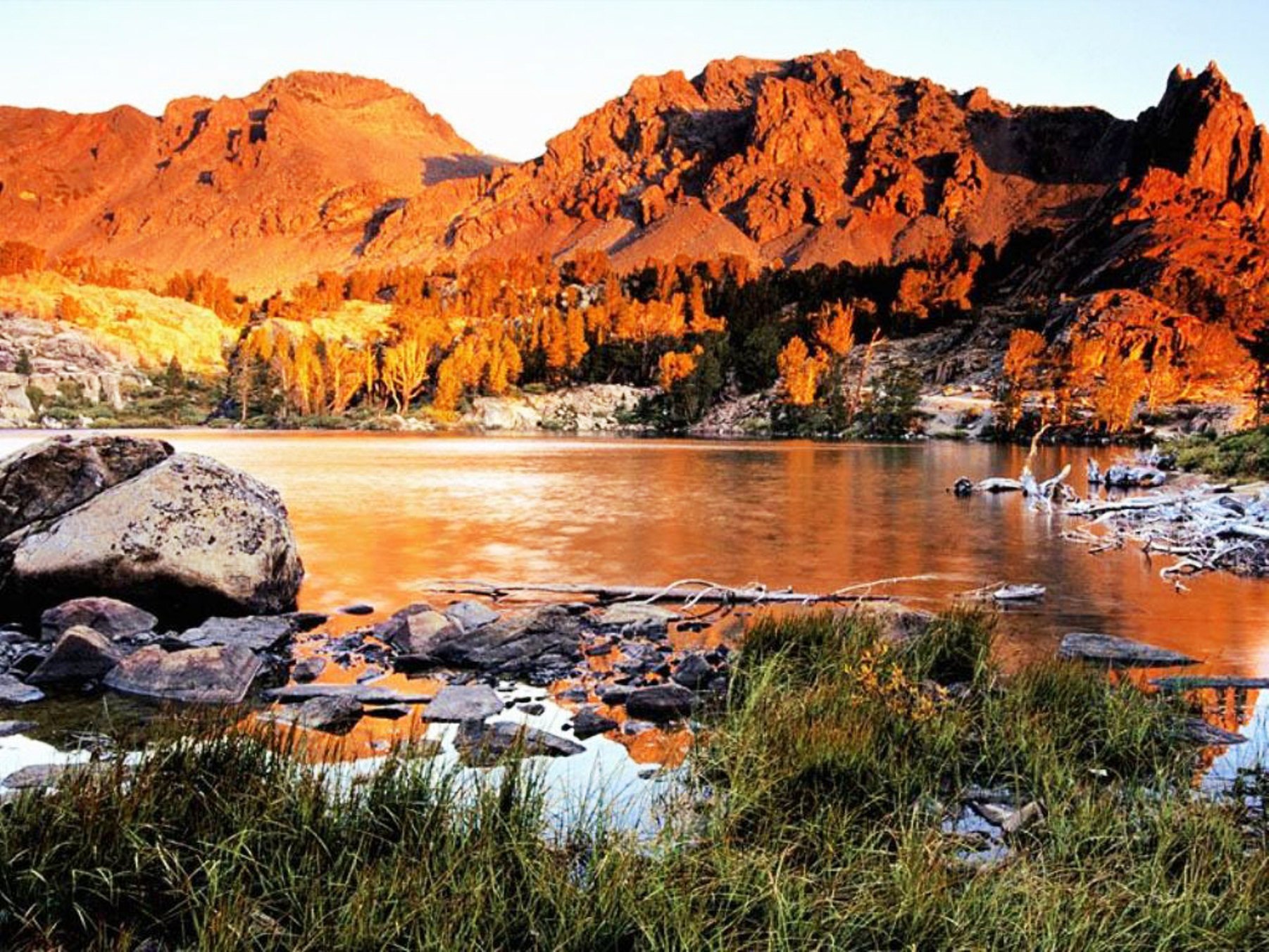 Обои Красные горы на фоне озера