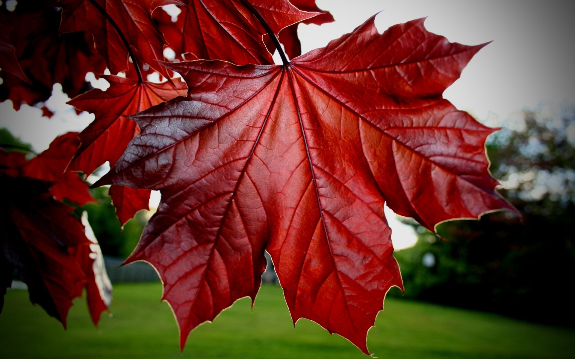 Скачать обои для рабочего стола Красные кленовые листья и фото