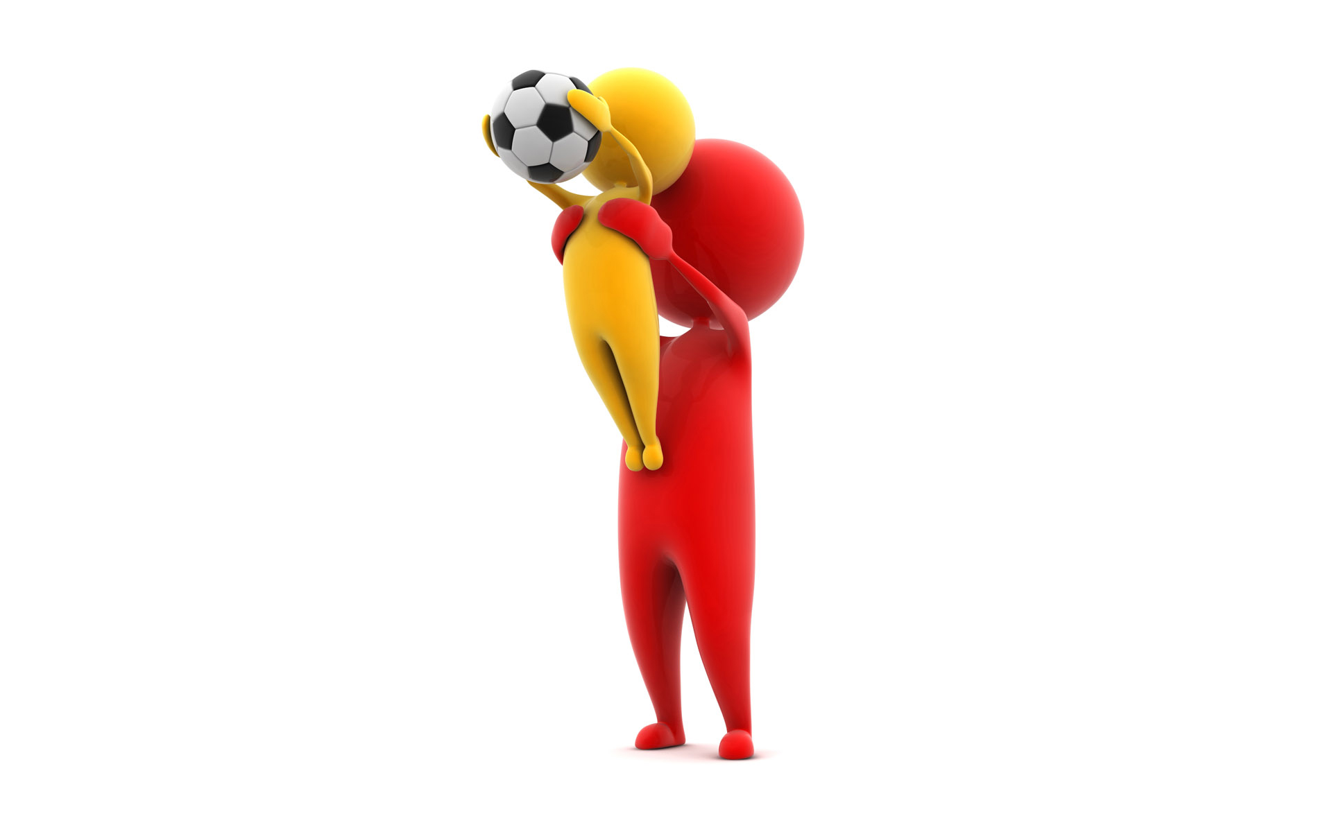 Похожие обои на Красный человечек с жёлтеньким сынком, который держит футбольный мячик: