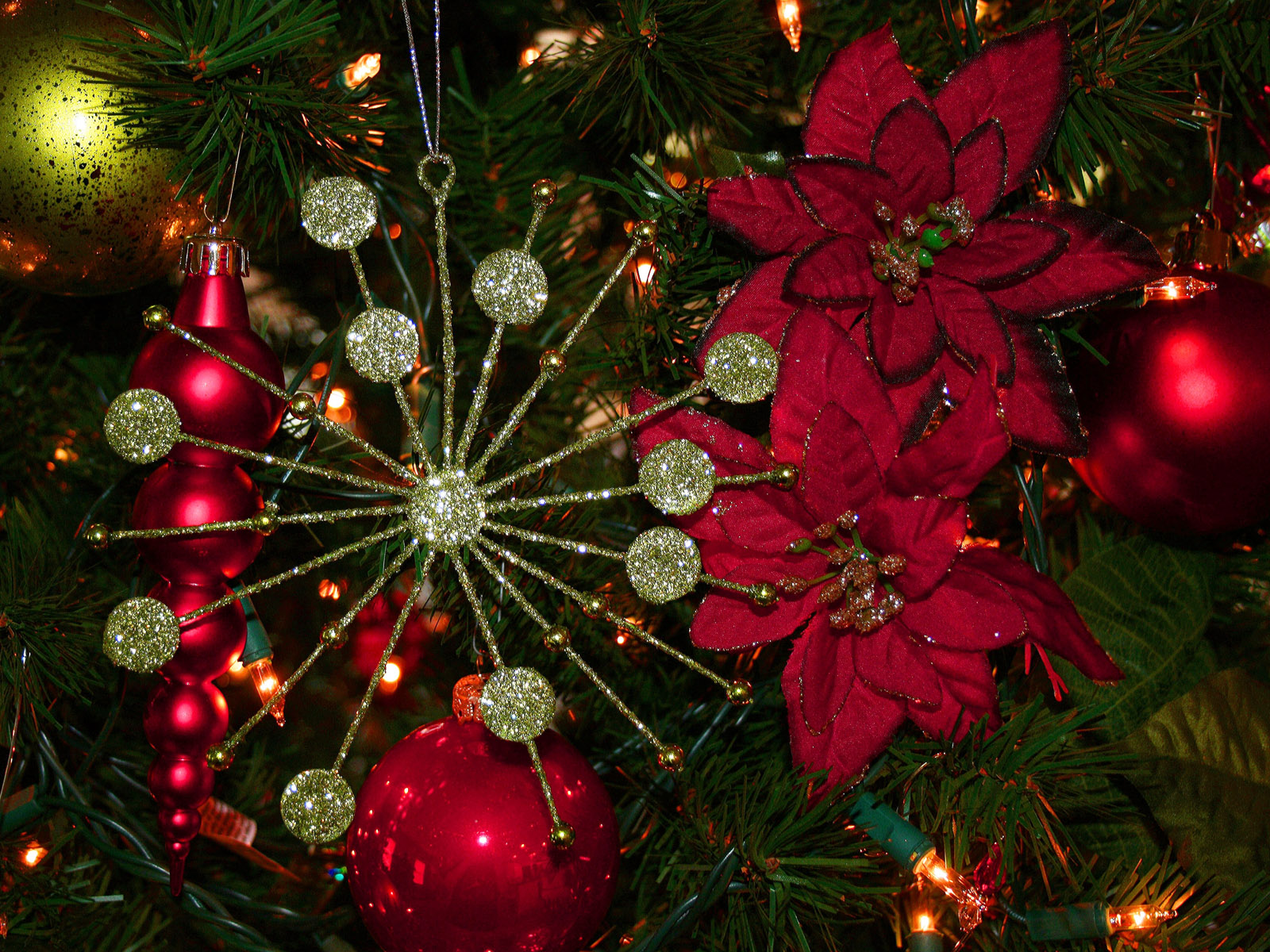 Скачать обои для рабочего стола Красный цветы и листья с разноцветными шариками и фото