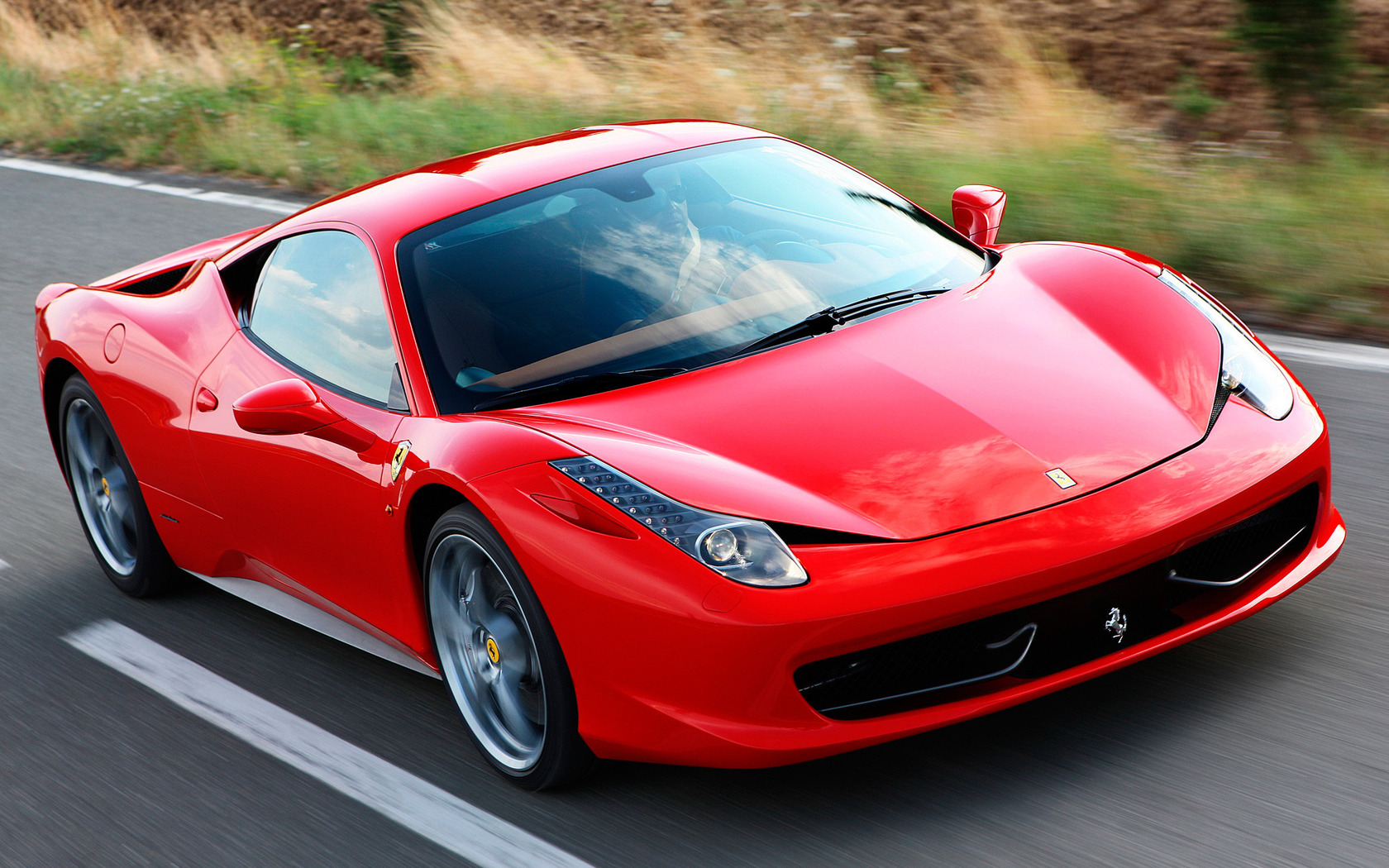 Скачать обои для рабочего стола Красный Ferrari на трассе и фото