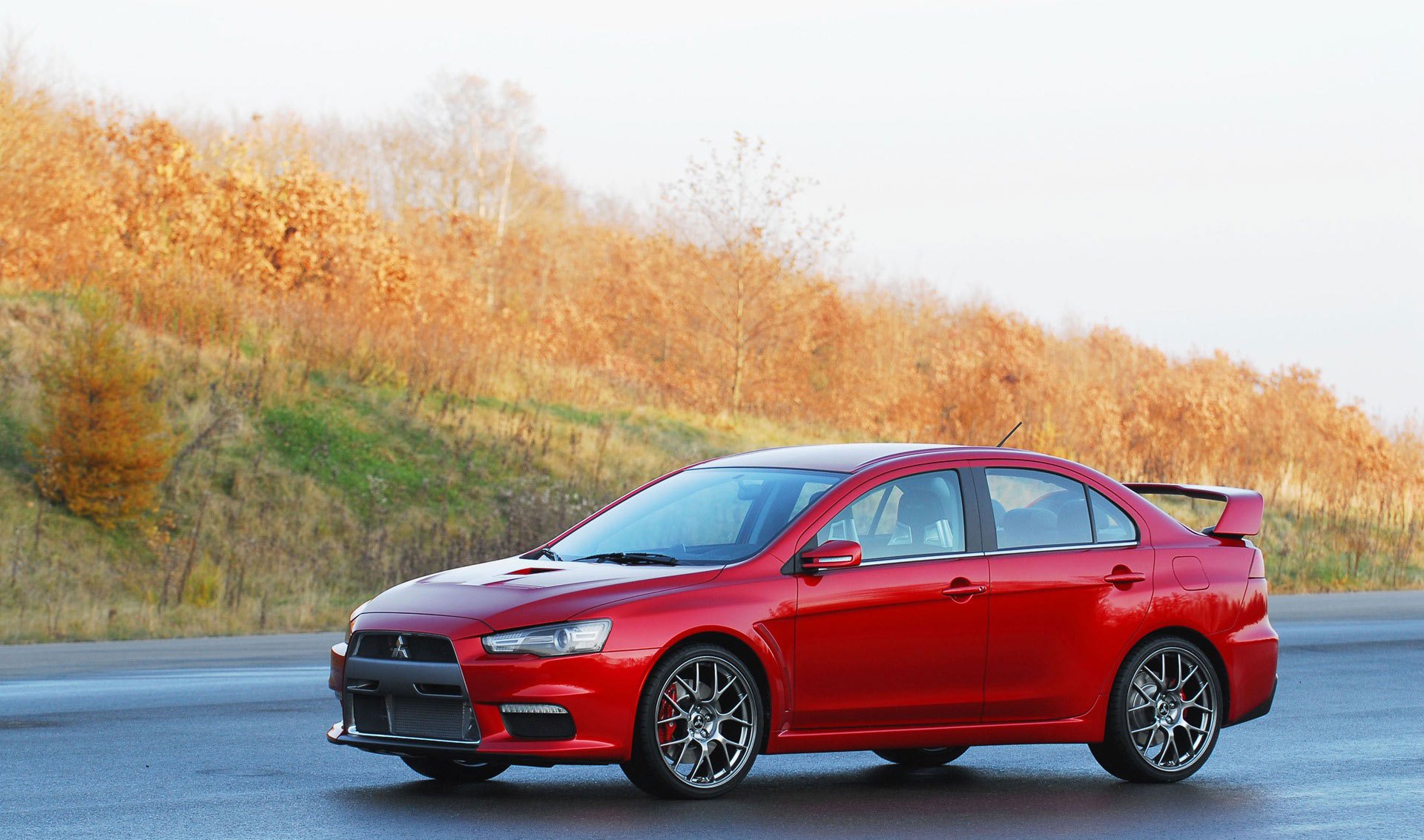 Скачать обои для рабочего стола Красный Лансер на дороге и фото