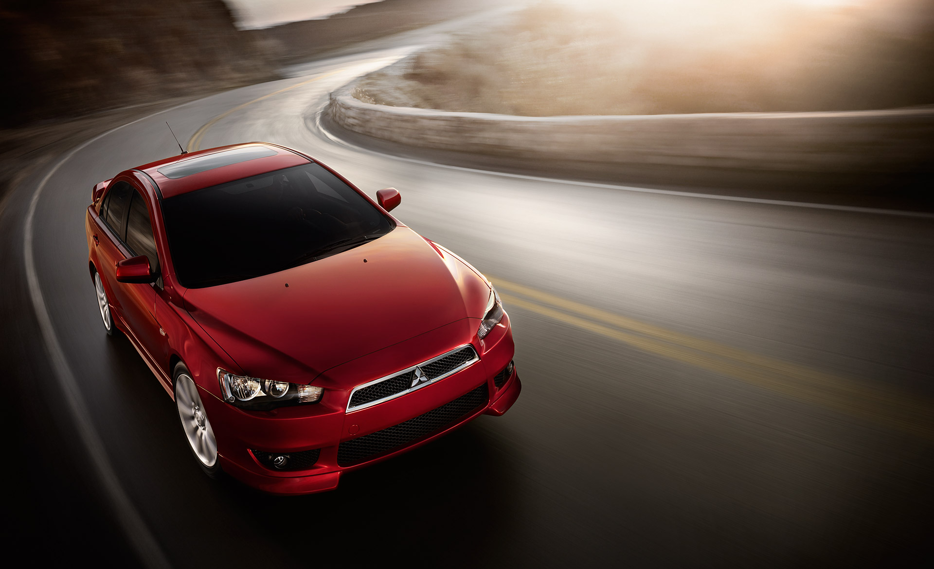 Скачать обои для рабочего стола Красный Mitsubishi на дороге и фото