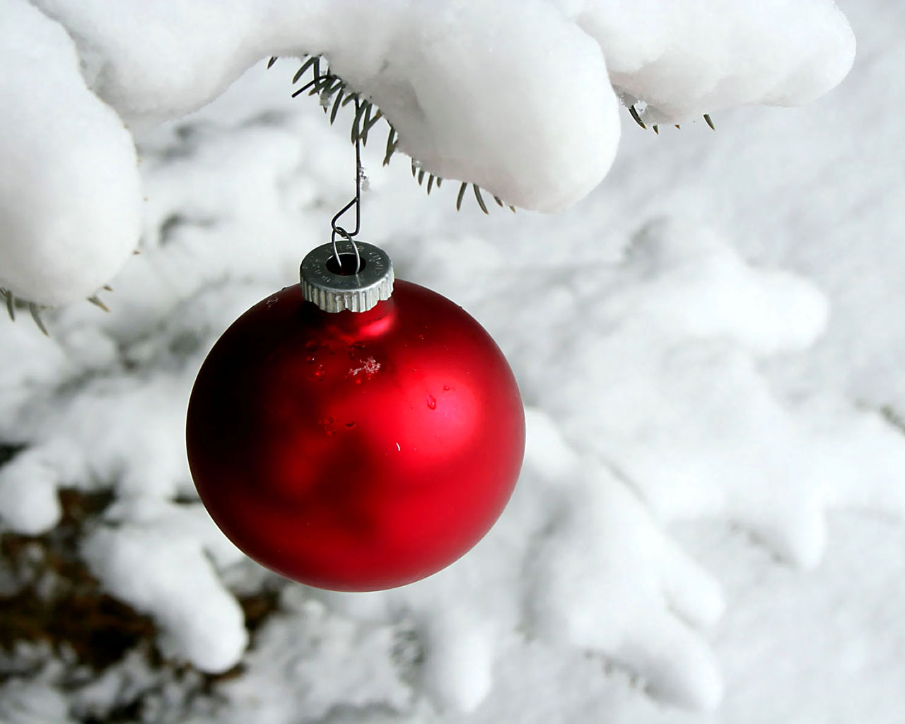 Скачать обои для рабочего стола Красный шарик на елке и фото