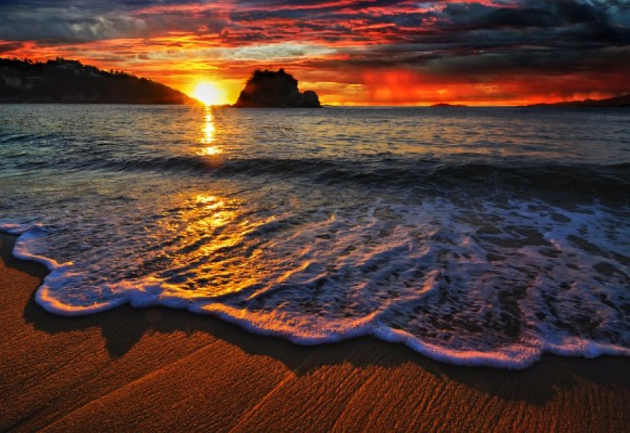 Скачать обои для рабочего стола Красный закат и тихие волны и фото