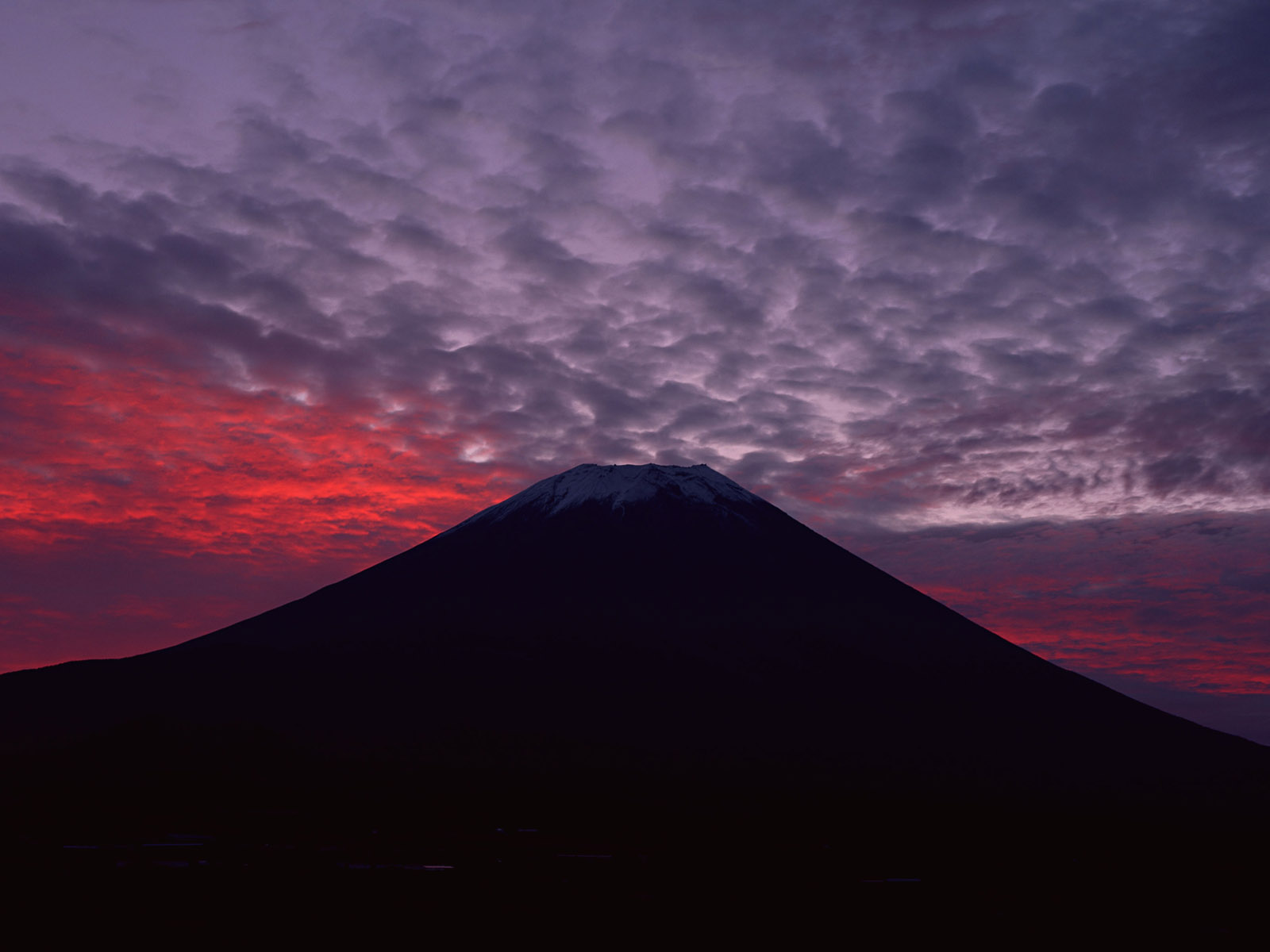 Скачать обои для рабочего стола Красный закат на фоне горы и фото