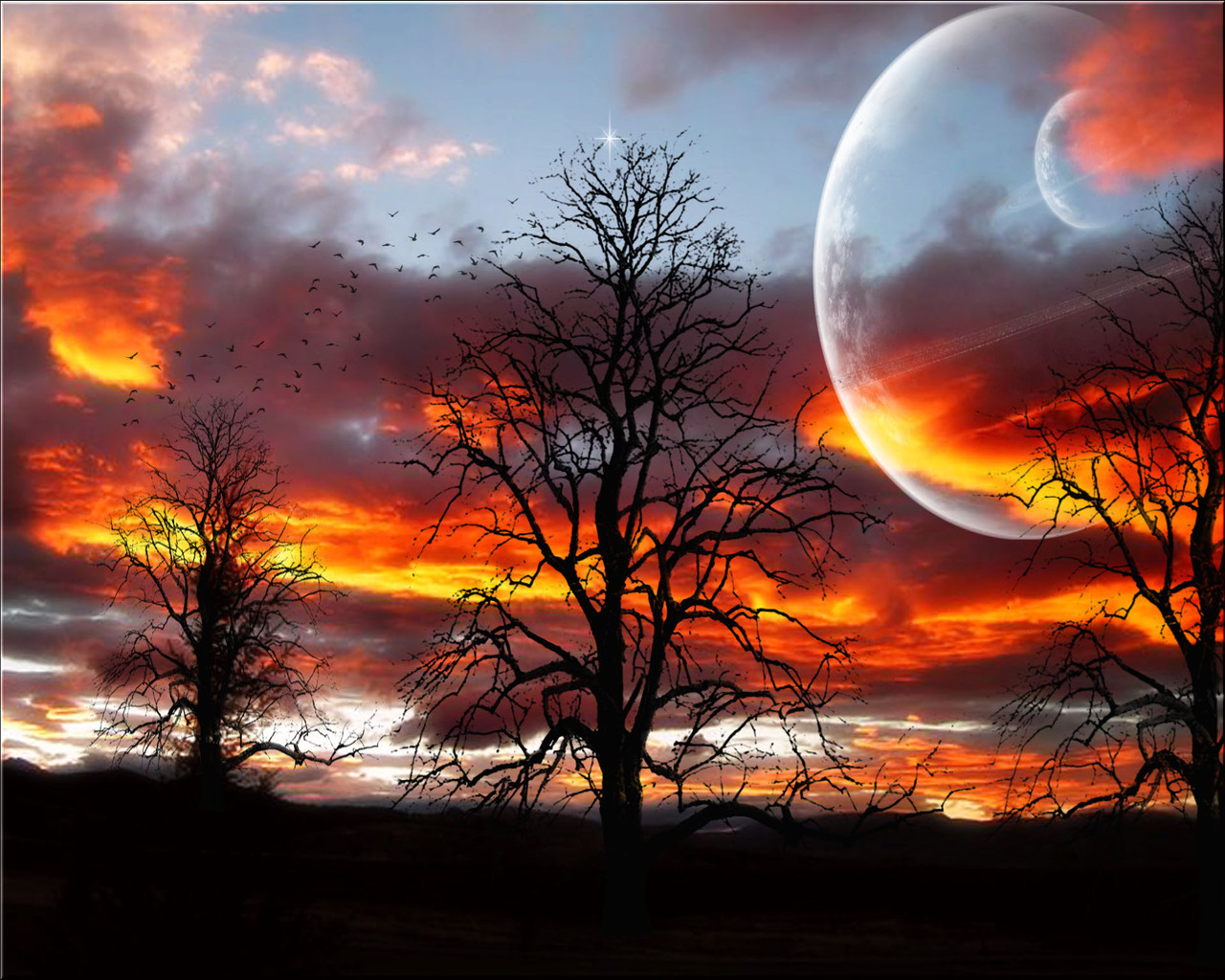 Скачать обои для рабочего стола Красный закат в небе и фото