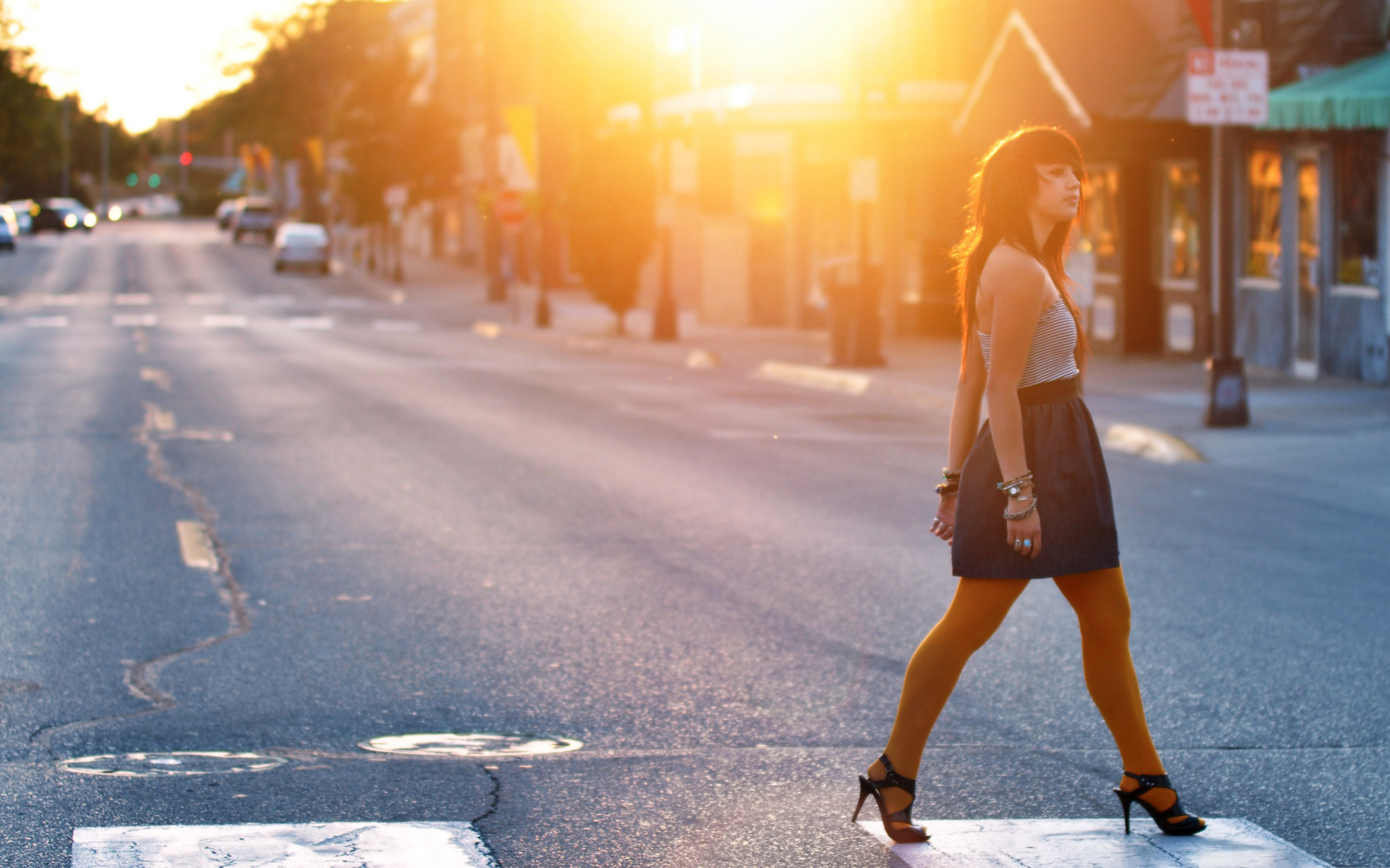 Скачать обои для рабочего стола Красотка переходит дорогу и фото